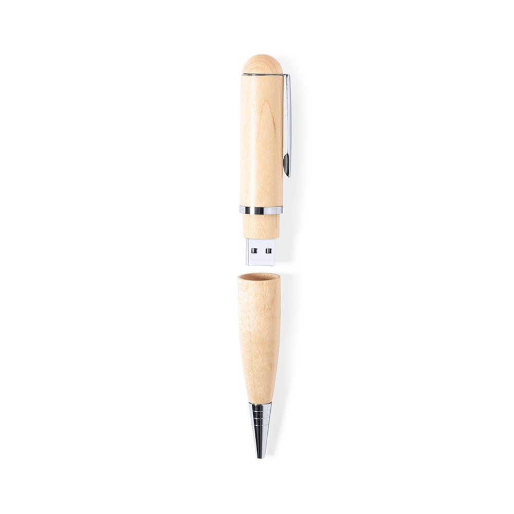Linie "Natur" USB-Kugelschreiber. Mit 16GB USB-Flash-Laufwerk in der Kappe integriert und aus Holz, um die Verwendung von natürlichen Materialien zu fördern. Mit Drehmechanismus und blauschreibend. Präsentiert in einer attraktiven Schachtel aus Kraftpapier.
