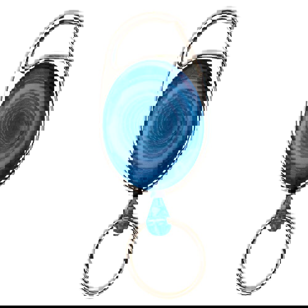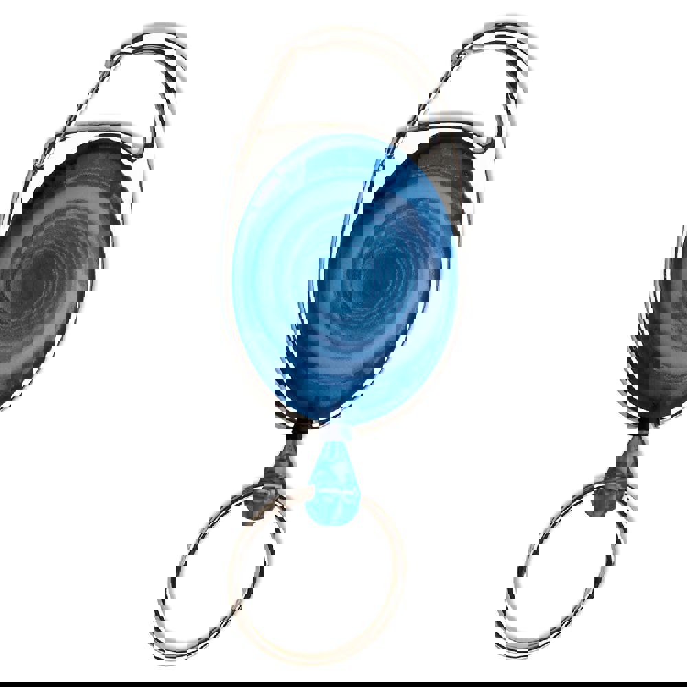 Gefrosteter Namensschildhalter mit Ausziehband (60cm) und Karabinerhaken. mehr