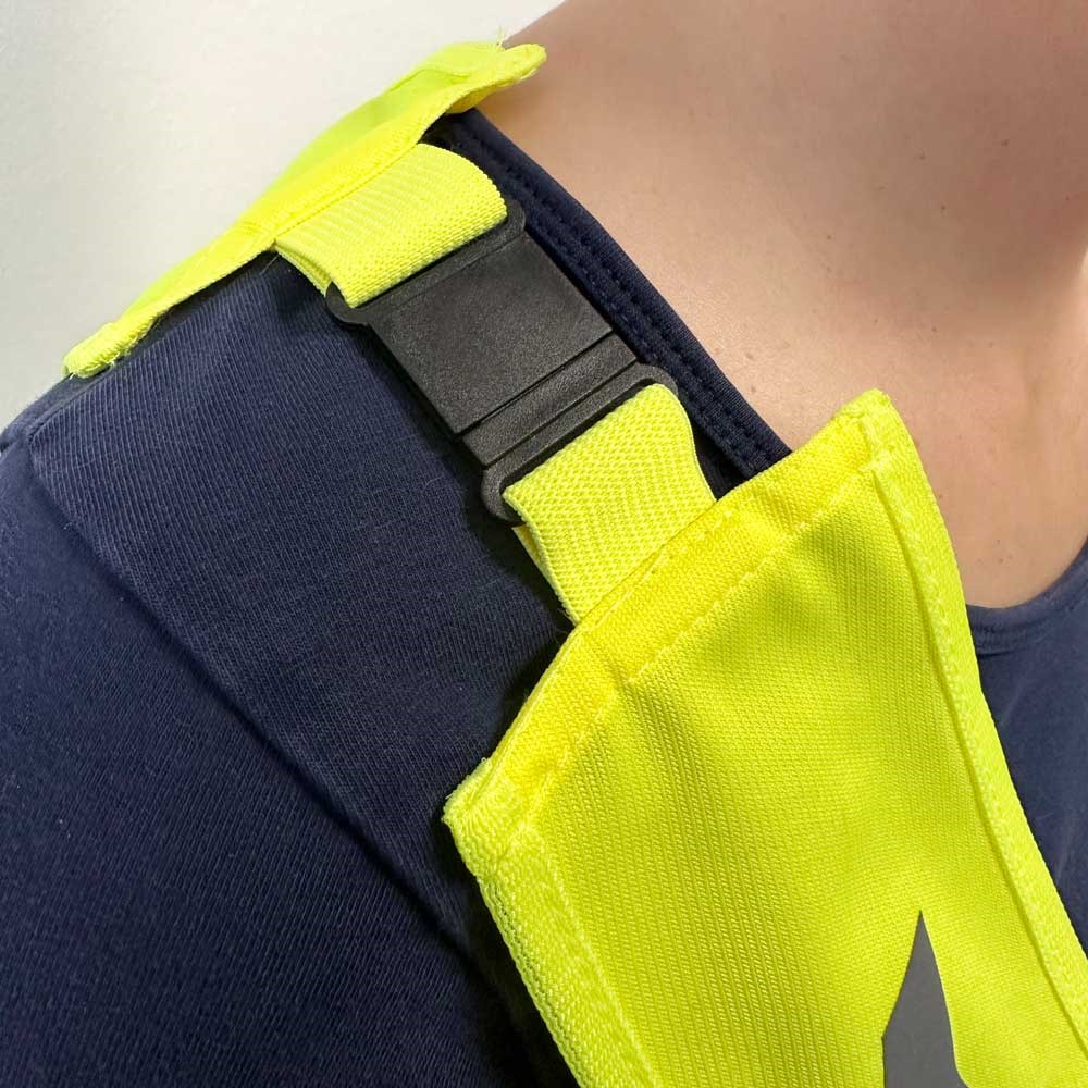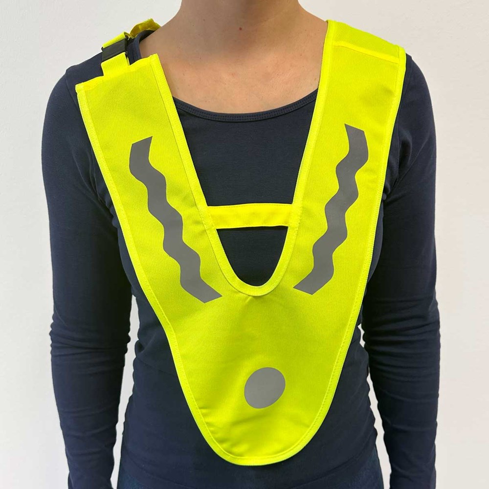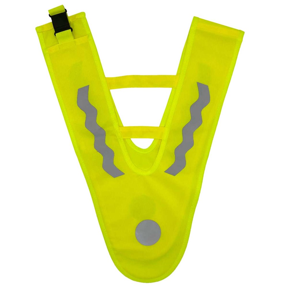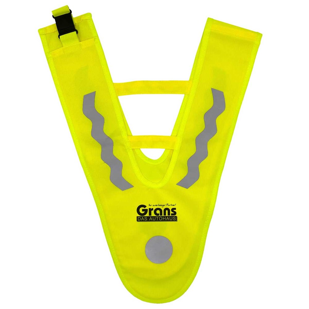 Unser Kinderüberwurf DREIECK PLUS wird aus 100% Polyester produziert. Druch die eingenähten Stege im Brust- und Rückenbereich, bekommt dieser Überwürf mehr Stabilität beim Tragen. Die Sollbruchstelle im Nackenbereich ist ein zusätzlicher Sicherheitsfaktor. Die reflektierenden Elemente auf Vorder- und Rückseite des Überwurfes garantieren eine verbesserte Sichtbarkeit bei einsetzender Dämmerung und bei Dunkelheit.