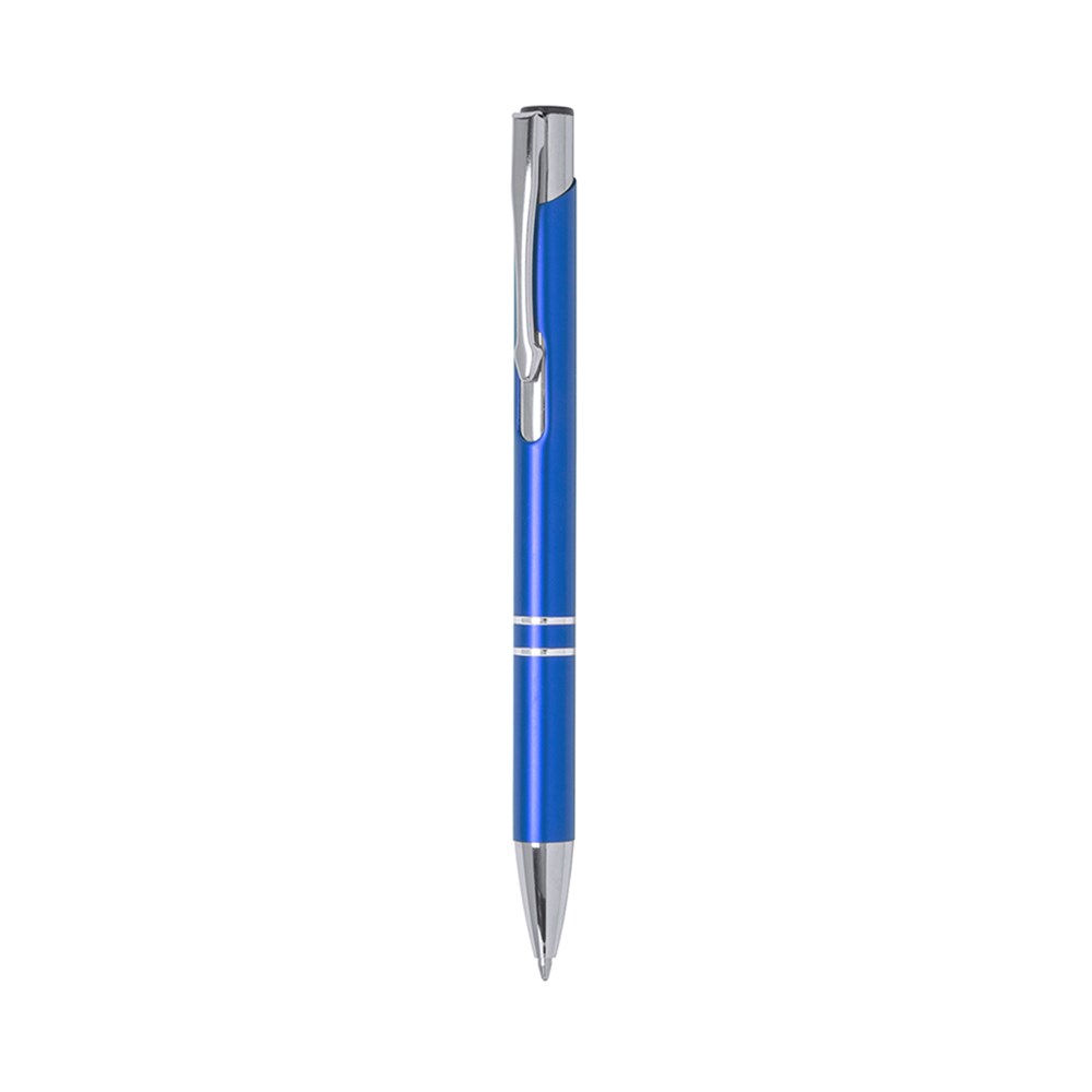 Origineller Kugelschreiber mit Druckknopfmechanismus in elegantem zweifarbigen Design. Gestanzter Aluminiumschaft mit glatter Oberfläche in verschiedenen Farben. Origineller Clip, Ringe und Spitze in Silber. Mit Jumbo-Mine und blauer Tinte.