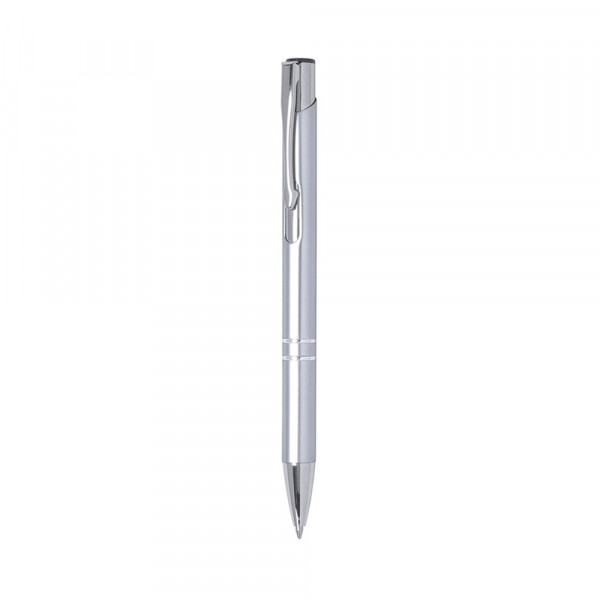 Origineller Kugelschreiber mit Druckknopfmechanismus in elegantem zweifarbigen Design. Gestanzter Aluminiumschaft mit glatter Oberfläche in verschiedenen Farben. Origineller Clip, Ringe und Spitze in Silber. Mit Jumbo-Mine und blauer Tinte.
