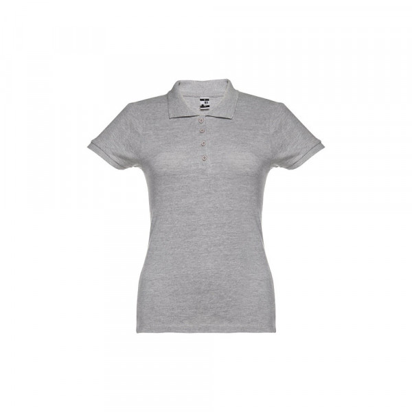 Damen Poloshirt aus Piqué Stoff 100% kardierter Baumwolle (195 g/m²), mit geripptem Kragen und Ärmel, Verstärkungsband am Kragen, verstärkte Knopfleiste mit 4 farblich abgestimmten Knöpfen und einem Ersatzknopf an der Innennaht.Bei der Farbe 183 bestehend aus 85% Baumwolle und 15% Viskose. Größen: S, M, L, XL, XXL