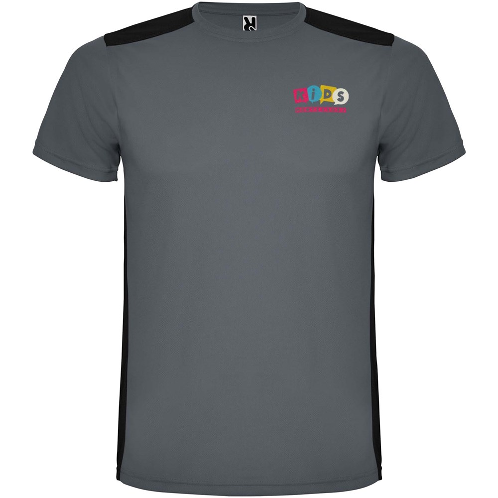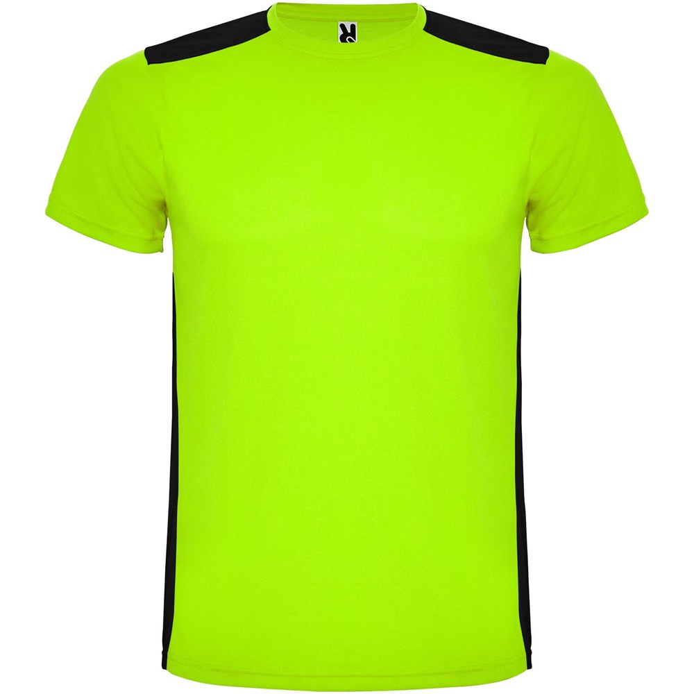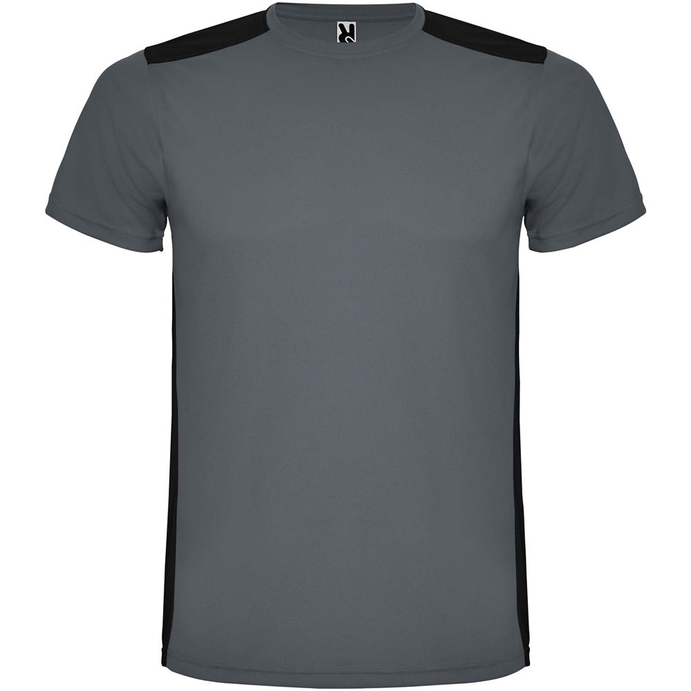 Funktions-T-Shirt aus atmungsaktivem Stoff. Rundhalsausschnitt. Kombination aus zwei Polyestergeweben im Rücken- und Schulterbereich. Polyester Bienenwabe Vorne und 3D-Netz Polyester auf Schulter und Rücken. Material ist feuchtigkeitabsorbierend. Ziernähte auf den Schultern und Seiten. Schnitt mit verlängertem Rückenteil. Abnehmbares Etikett.