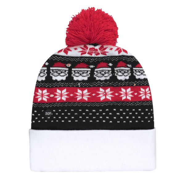 Weihnachtsmütze mit LED-Licht und Bommel-Design. Verfügt über 6 mehrfarbige LEDs mit sowohl stabilen als auch blinkenden Lichtoptionen (Knopfzellenbatterie inklusive). Hergestellt aus weichem Acryl. Ein ideales Geschenk, um die Kälte zu bekämpfen und eine warme und lustige Note hinzuzufügen.