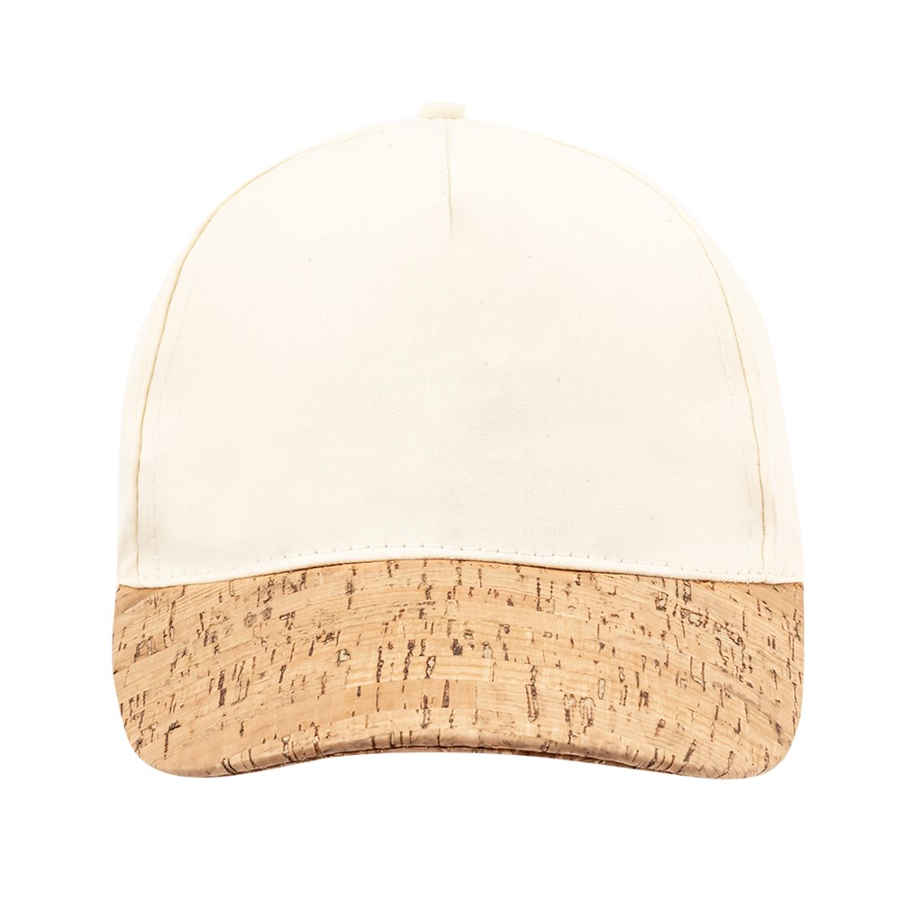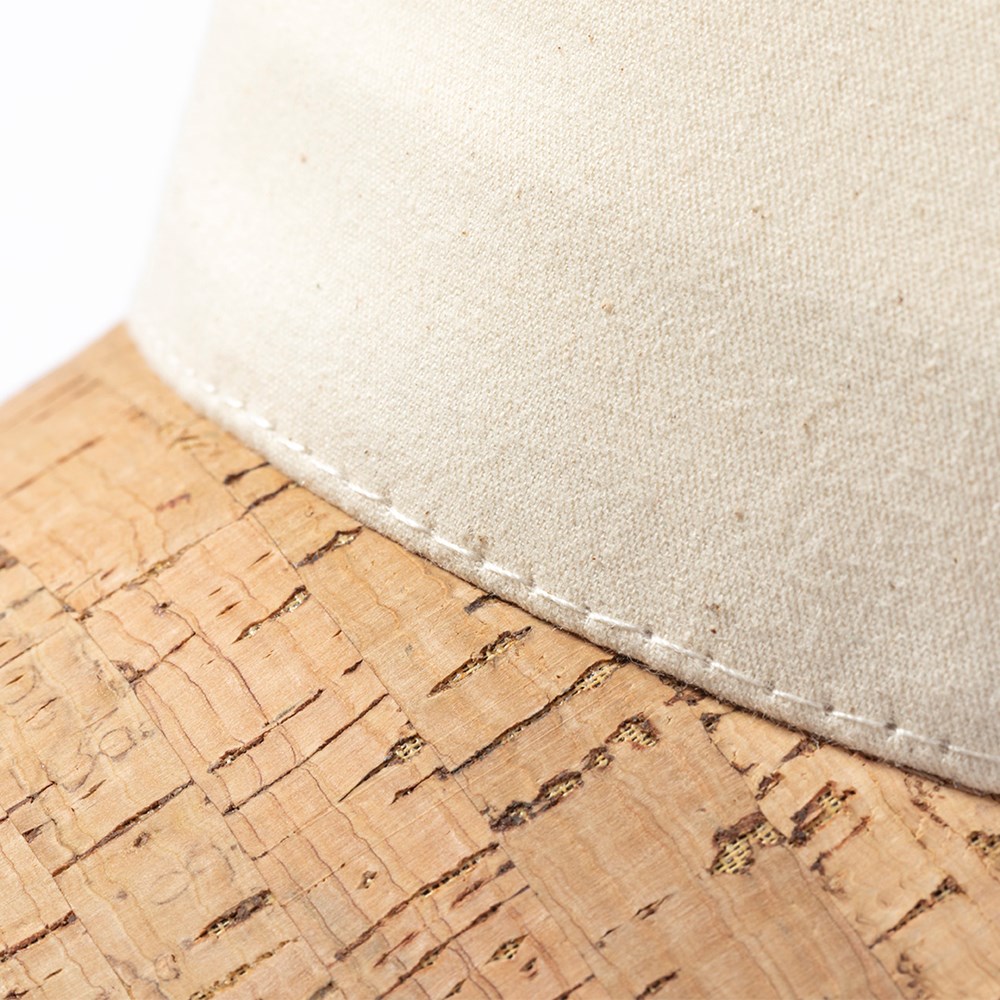 5-Panel Cap der Liene "Natur" aus Bio-Baumwolle, mit Naturkork-Visier. Mit verstellbarem Klettverschluss.