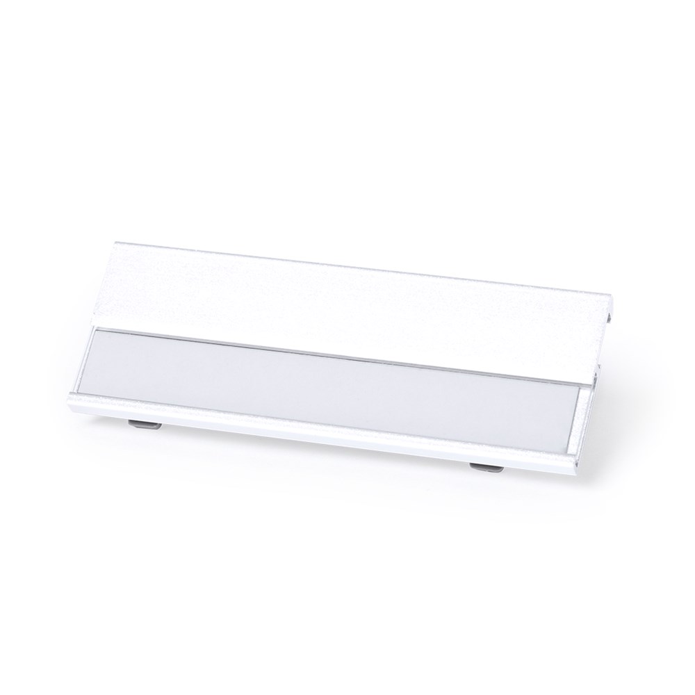 Aluminium-Namensschild in lebendigen Farben mit Befestigungsnadel auf der Rückseite. mehr