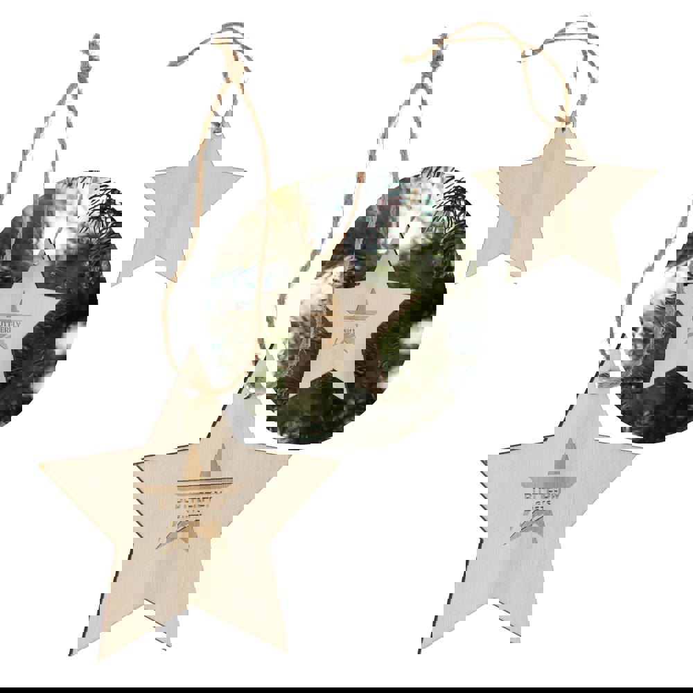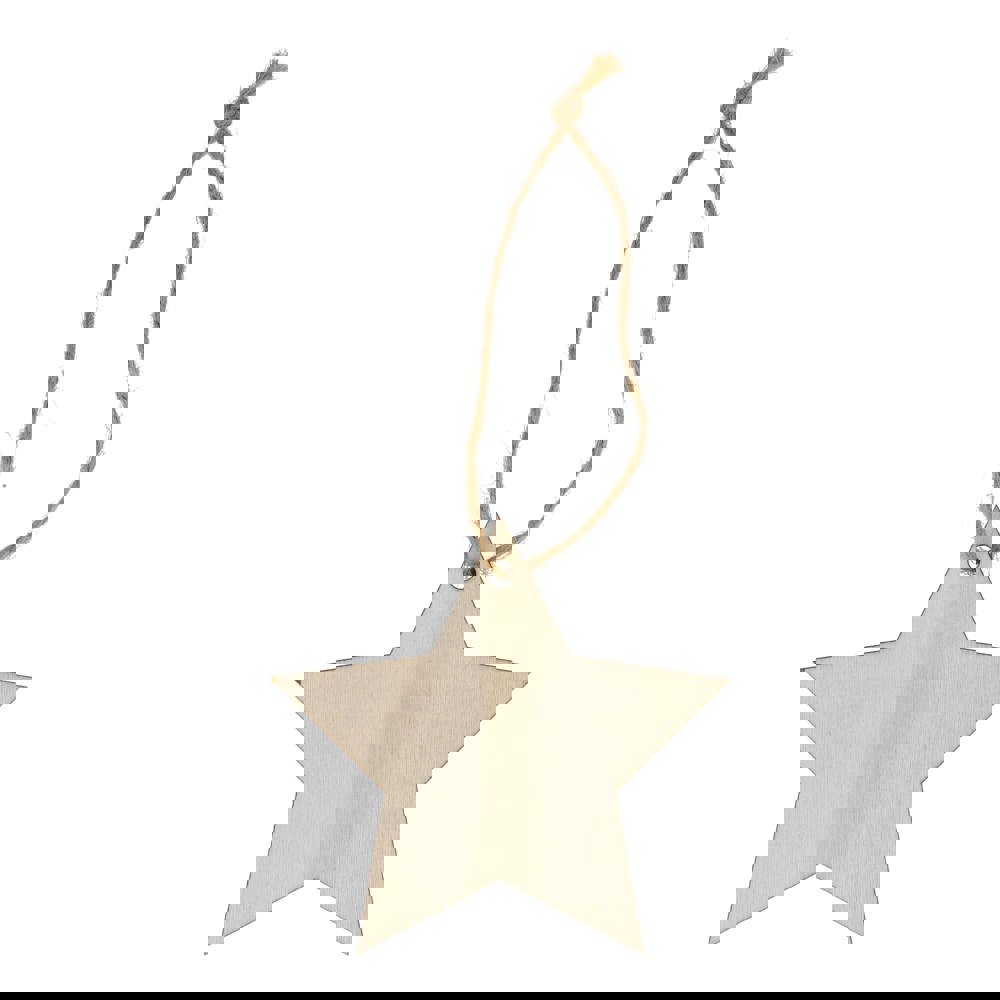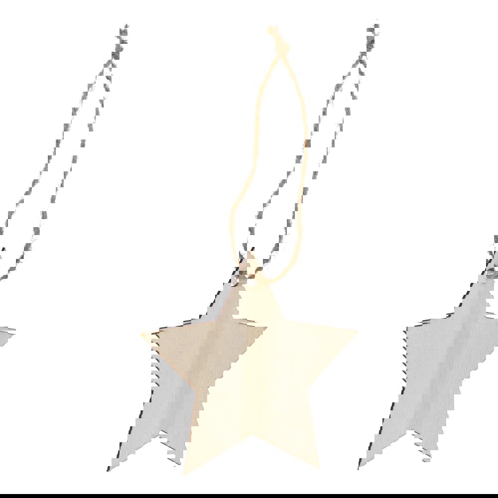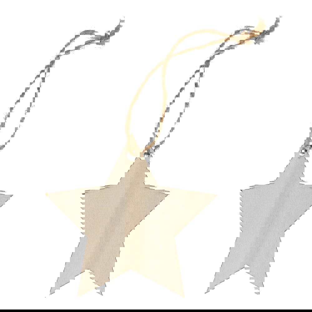 Feiern Sie die Saison mit diesem charmanten sternförmigen Holzornament. Die klassische Form und der große Platz für das Branding machen es perfekt für die Personalisierung, die Schaffung eines einzigartigen Andenkens für Urlaubserinnerungen und durchdachte Geschenke. Ideal für die Dekoration von Weihnachtsbäumen, Kränzen oder festlichen Auslagen.