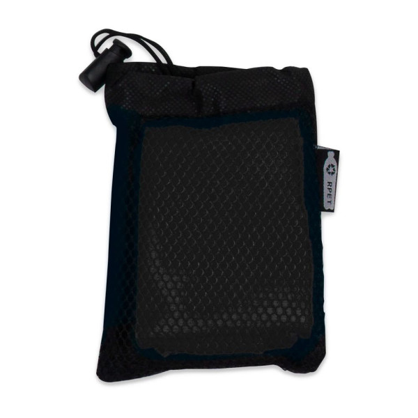 Ein nachhaltiger Werbeartikel für jede sportliche Aktivität. Dieses kühlende Handtuch senkt die Körpertemperatur. Das Wasser im Handtuch verdunstet in die Luft und senkt die Temperatur des Körpers und der Umgebungsluft. Das Handtuch und der praktische Beutel sind aus R-PET-Material, das wiederum aus recycelten PET-Flaschen besteht. Handtuchgröße: 30x80cm.