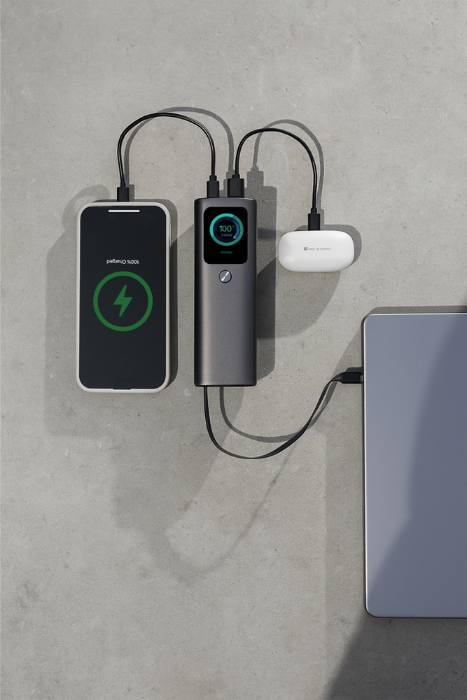 Mit einer robusten Kapazität von 20.000mAh unterstützt die Stanford eine unglaubliche 165W-Megageschwindigkeitsladung und sorgt dafür, dass Ihre Geräte, darunter mehrere Laptops und MacBooks, gleichzeitig und blitzschnell aufgeladen werden. Ausgestattet mit drei Ausgangsoptionen – zwei USB-C und ein USB-A-Port – ist die Stanford auf maximale Vielseitigkeit ausgelegt. Außerdem verfügt sie über ein einzigartiges integriertes 70cm langes, einziehbares USB-C-Schnellladekabel mit 100W, sodass Sie kein zusätzliches Zubehör mitnehmen müssen. Das hochwertige TFT-Farbdisplay zeigt in Echtzeit die Ladegeschwindigkeit und den Gerätestatus an, sodass Sie während jedes Ladevorgangs stets auf dem Laufenden sind. Die Stanford verfügt über ein robustes Aluminiumgehäuse, das ihr ein hochwertiges Aussehen verleiht und gleichzeitig ein leichtes und tragbares Design gewährleistet. Urban Vitamin-Produkte werden ohne PVC hergestellt und in einer Verpackung mit reduziertem Kunststoffanteil geliefert.