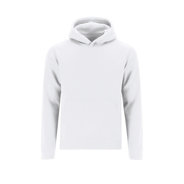 Kinder Unisex-Kapuzen-Sweatshirt mit gefütterter Kapuze aus doppellagigem Stoff in passender Farbe. Hergestellt aus Baumwolle und Polyester in weichem, aufgerautem Fleece 280 g/m. Mit Kängurutasche, verstärktem Nackenband sowie Bündchen und Saum aus 1x1-Rippstrick mit Elasthan für besseren Sitz und Komfort.