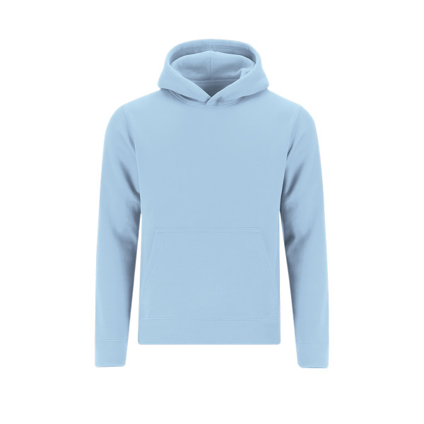 Kinder Unisex-Kapuzen-Sweatshirt mit gefütterter Kapuze aus doppellagigem Stoff in passender Farbe. Hergestellt aus Baumwolle und Polyester in weichem, aufgerautem Fleece 280 g/m. Mit Kängurutasche, verstärktem Nackenband sowie Bündchen und Saum aus 1x1-Rippstrick mit Elasthan für besseren Sitz und Komfort.