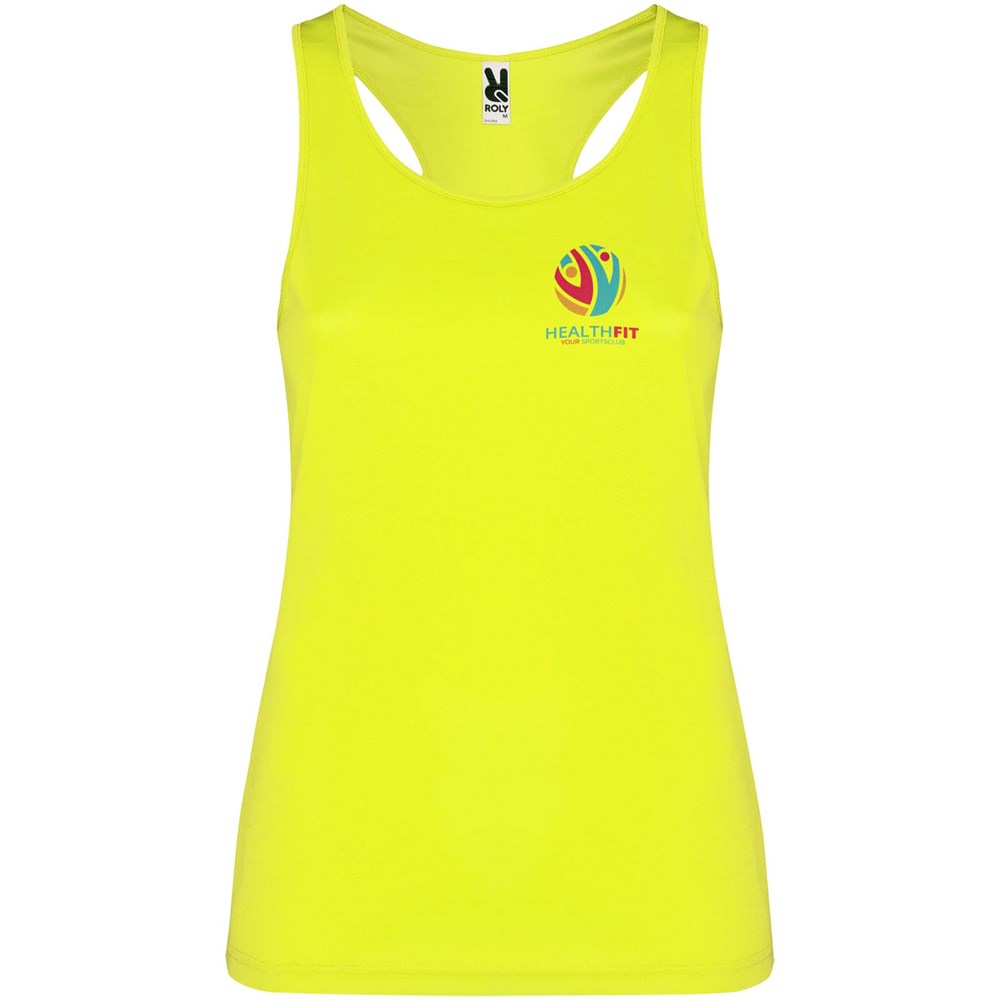 Funktionsstoff, atmungsaktiv, leicht zu waschen und zu trocknen. Gerippter Arm- und Halsausschnitt. Racerback und Seitennähte. Abnehmbares Etikett.