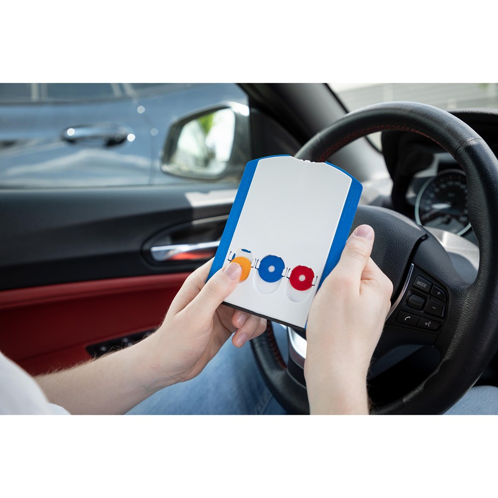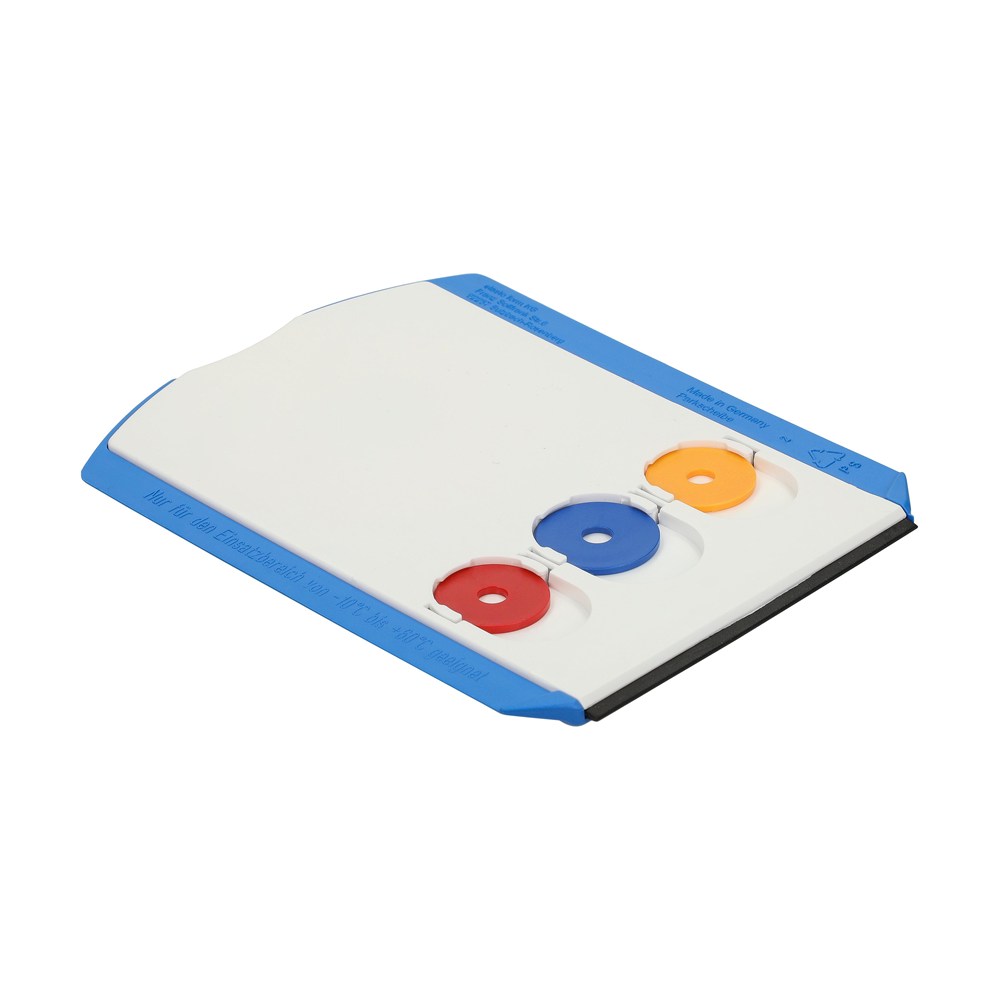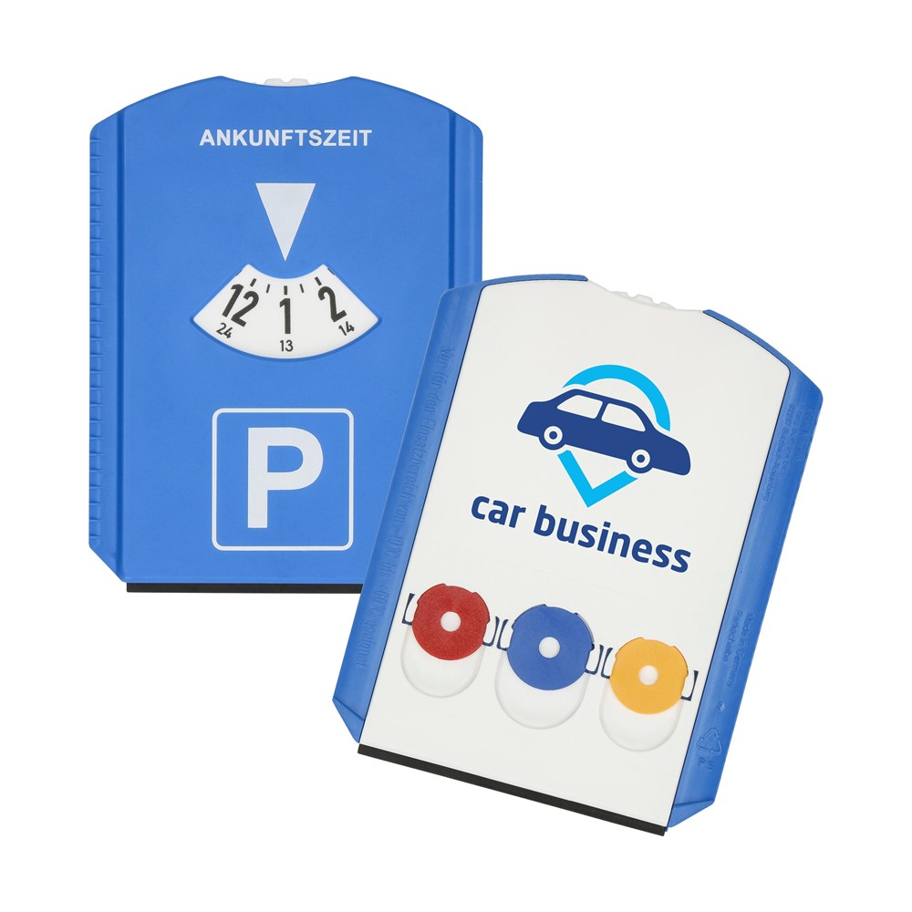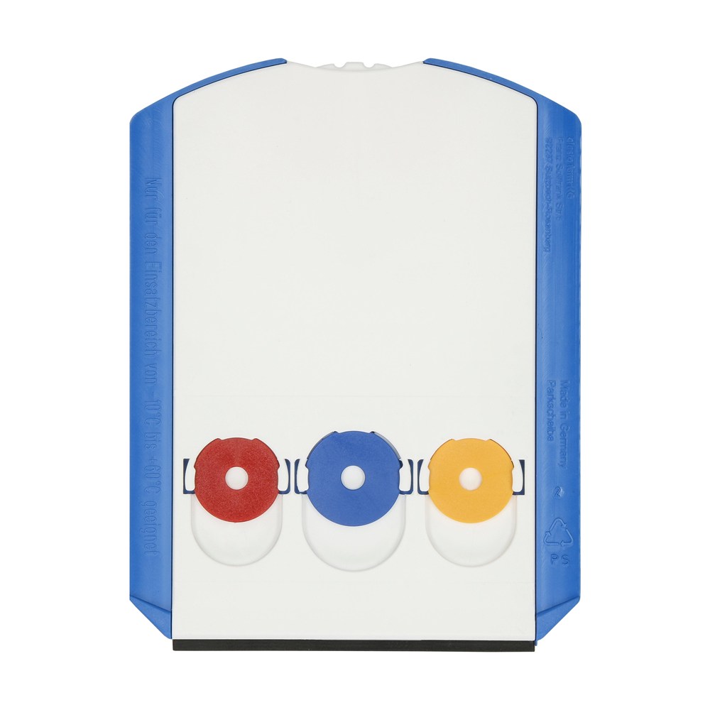 Kunststoff-Parkscheibe mit glatter Kratzkante, Kratzzacken und Wasserabstreifer. Auf der Rückseite befinden sich 3 Halterungen für 1 Euro oder 2 Euro Münzen. Standardmäßig mit 3 bunt gemischten Chips bestückt, Wunschfarben auf Anfrage. Entspricht Paragraph 42 StVO. Einsetzbar von -10°C bis +60°C. Auf Anfrage auch in verschiedenen Sprachvarianten erhältlich.