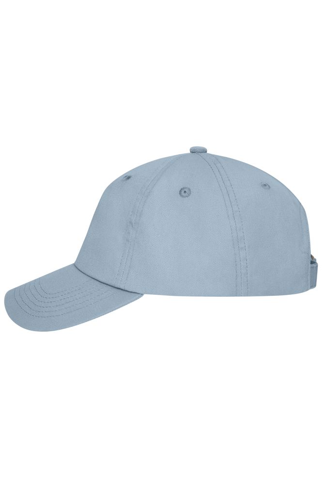 Ungebürstete Oberfläche 6 gestickte Luftlöcher 6 Ziernähte am Schild Stirnanliegende Frontpanels Angenehmer Tragekomfort durch gefüttertes Schweißband Verschluss mit Metallschnalle in mattsilber Bio Baumwolle Caps zum Bedrucken Verschluss: Clip 6 Panel Cap stirnanliegend
