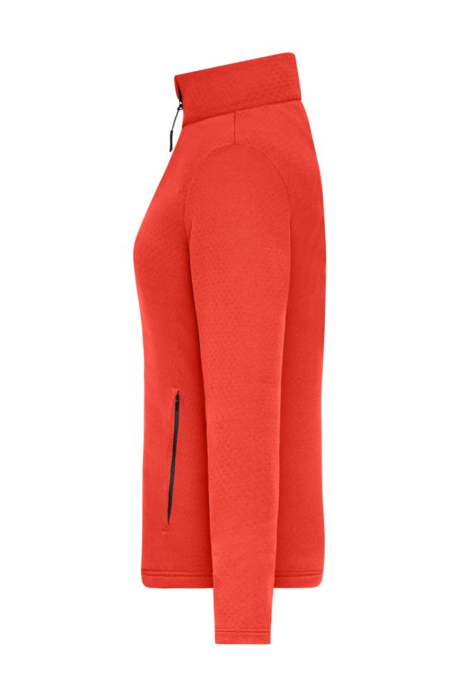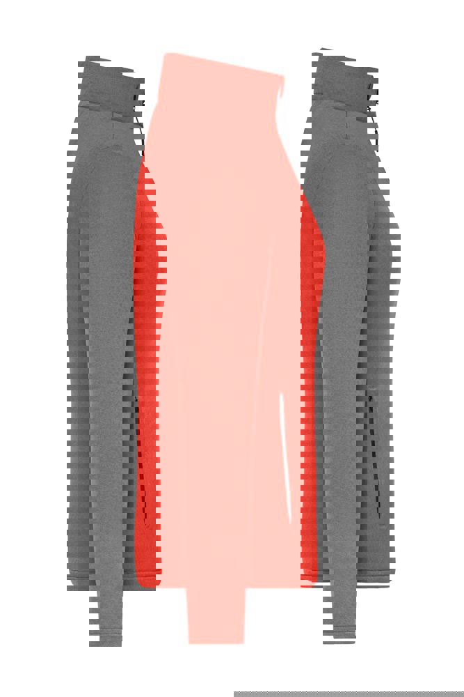 Angenehm weiche, bi-elastische Qualität Außenseite glatt, Innenseite mit strukturierter Fleeceoptik Durchgehend unterlegter Reißverschluss mit Kinnschutz 2 seitliche Taschen mit Reißverschluss Kontrastfarbige Reißverschlüsse Stehkragen JN1387: leicht tailliert 1/2 Oberweite: 44 cm 1/2 Taillenweite: 39 cm 1/2 Saumweite: 44 cm Länge ab Schulter: 59 cm Ärmel Länge: 60 cm GRS Standard Stehkragen
