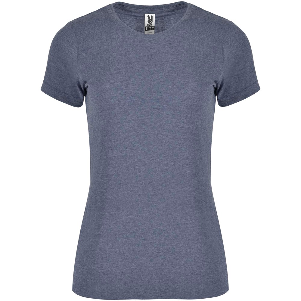 T-Shirt mit meliertem Effekt. Tailliertes Design. Rundhalsausschnitt aus 1×1-Rippstrick mit innenliegenden, verstärkten und verdeckten Nähten. Schlauchförmiger Stoff. Abnehmbares Etikett.