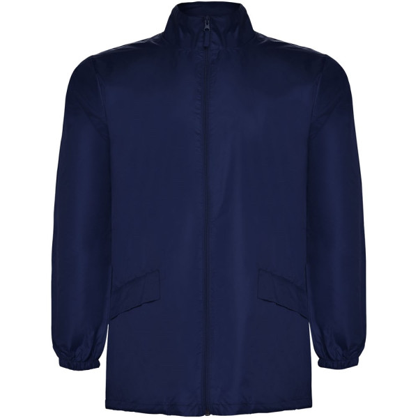 Regenjacke mit Stehkragen und einrollbarer Kapuze mit verstellbarem Kordelzug.... mehr