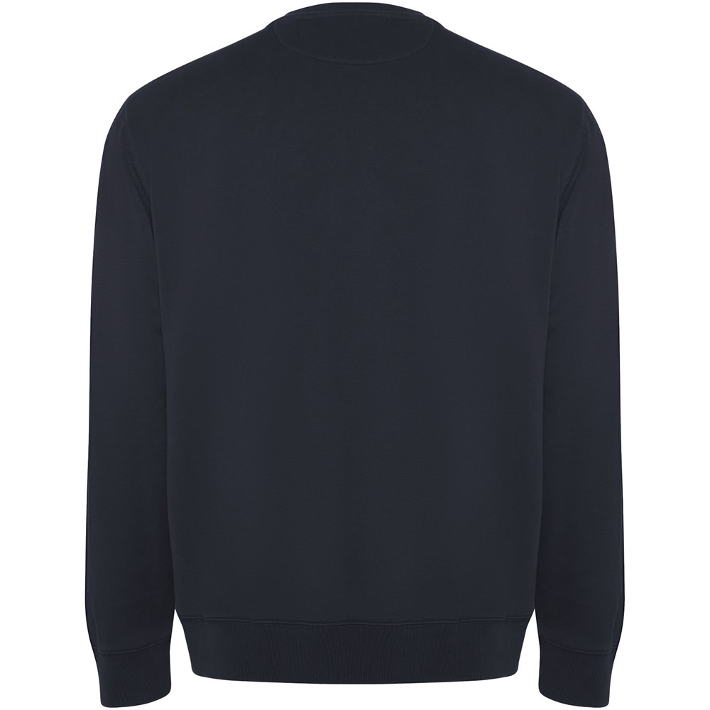 Unisex-Pullover aus gekämmter Bio-Baumwolle und recyceltem Polyester. Kragen, Bündchen und Saum aus 2×1 Rippstrick. Ziernähte an Schultern, Armausschnitt, Kragen, Bündchen und Saum. Halbmondförmige Naht hinten am Innenkragen. Herausnehmbares Etikett. Einzelverpackung aus recyceltem Material. Das Modell ist 190 cm groß und trägt Größe L.