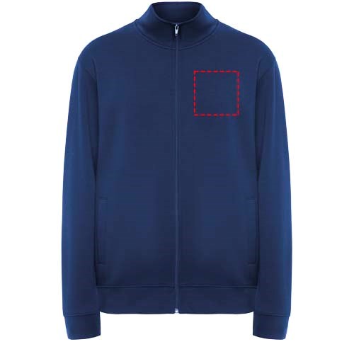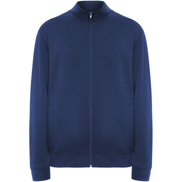 Pullover mit Stehkragen und passendem Reißverschluss. Passender Innenkragen mit verstärkten und verdeckten Nähten. Bündchen und Taille aus 1×1-Rippstrick. Herausnehmbares Etikett. Das männliche Modell ist 185 cm groß und trägt Größe L, das weibliche Modell ist 168 cm groß und trägt Größe S.
