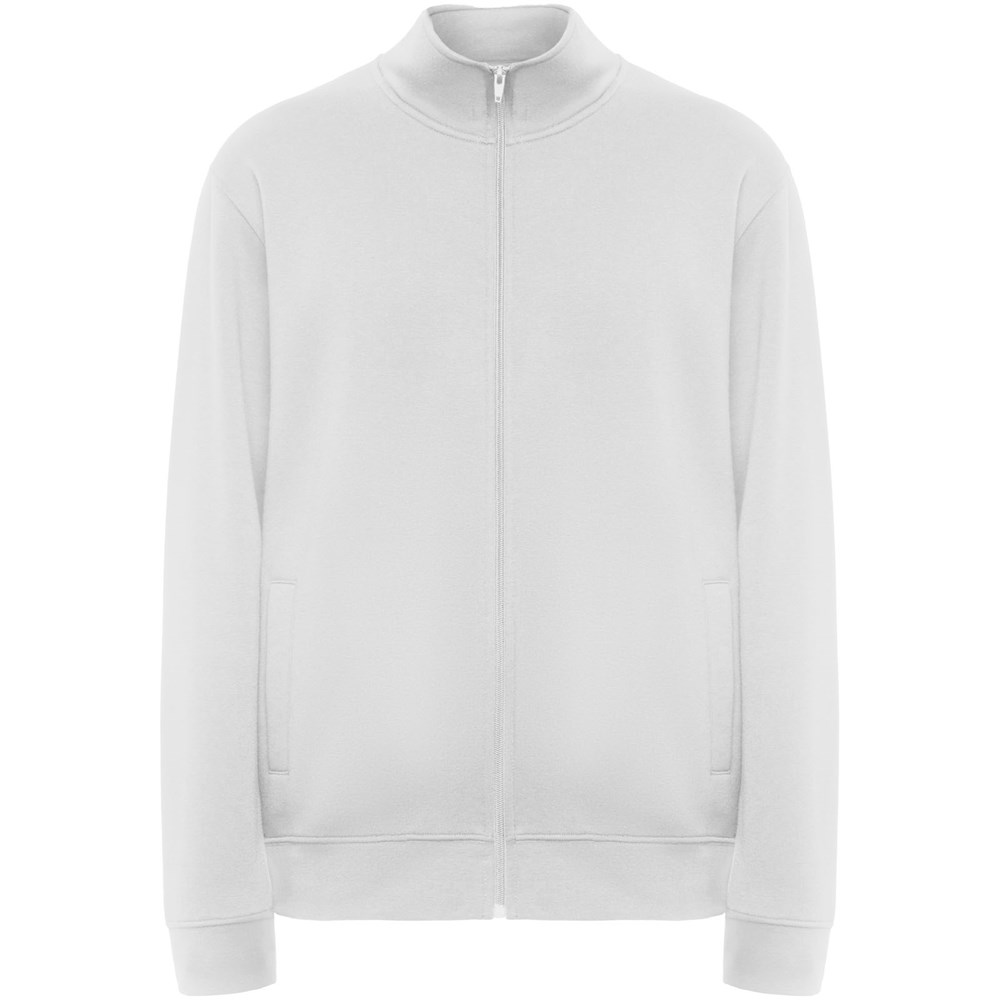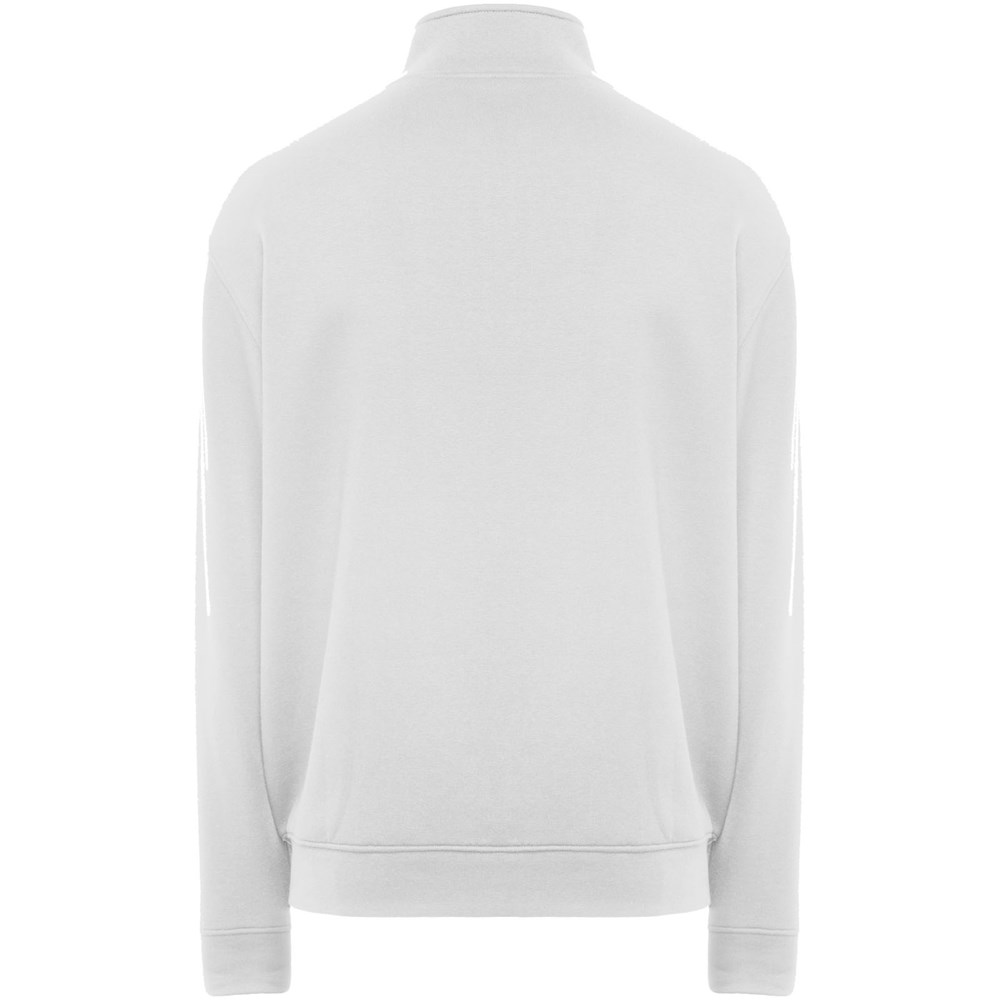 Pullover mit Stehkragen und passendem Reißverschluss. Passender Innenkragen mit verstärkten und verdeckten Nähten. Bündchen und Taille aus 1×1-Rippstrick. Herausnehmbares Etikett. Das männliche Modell ist 185 cm groß und trägt Größe L, das weibliche Modell ist 168 cm groß und trägt Größe S.