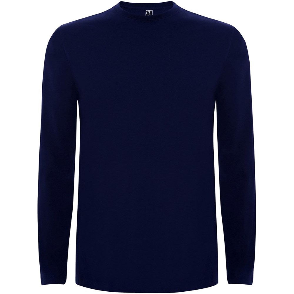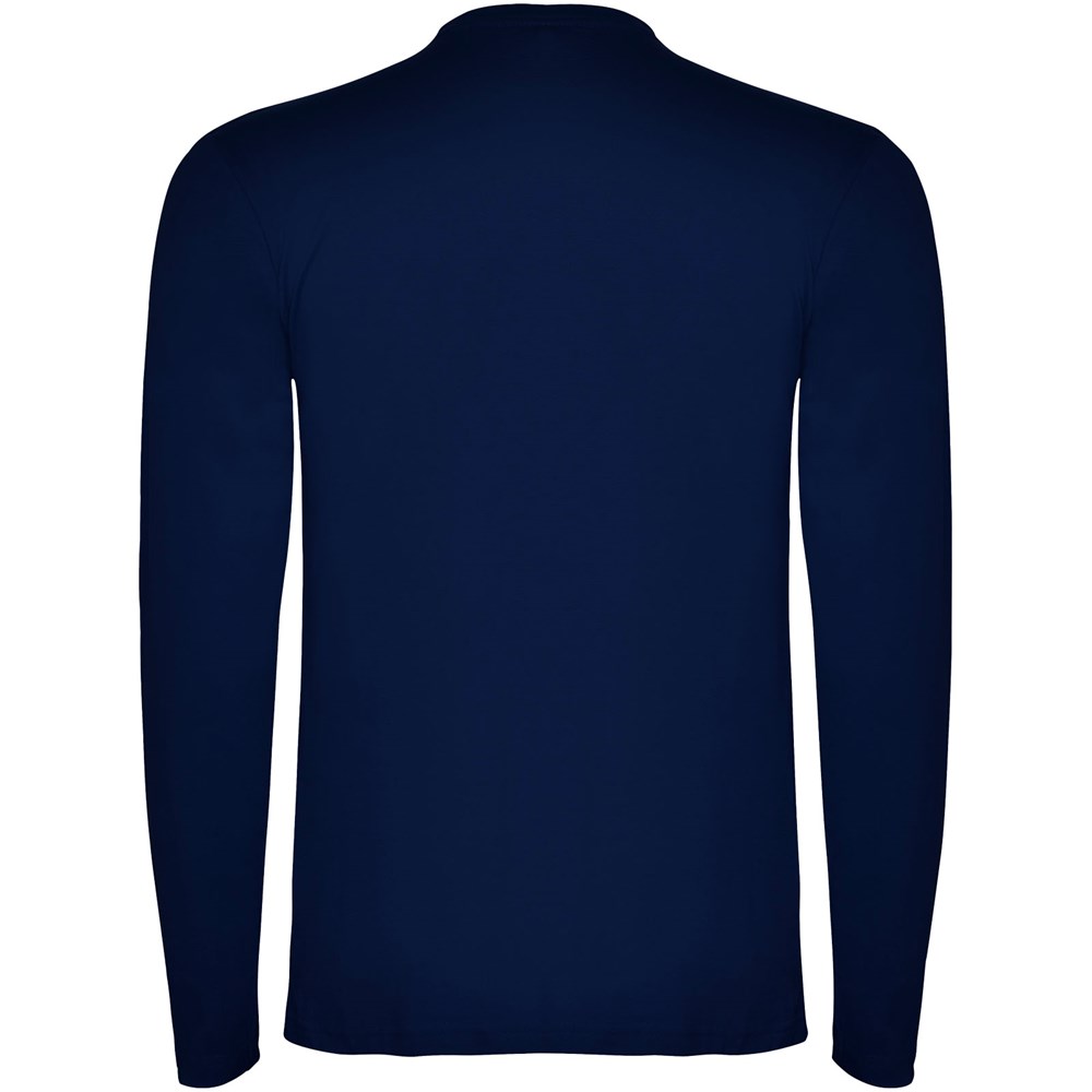 Langärmeliges Shirt aus Schlauchgewebe mit Rundhalsausschnitt aus 4 Schichten. Verstärkte Nähte an Kragen und Schultern. Keine Ärmelbündchen. Herausnehmbares Etikett. Schlauchdesign in Erwachsenengrößen und Seitennähte in Kindergrößen. Das Modell ist 185 cm groß und trägt Größe L.