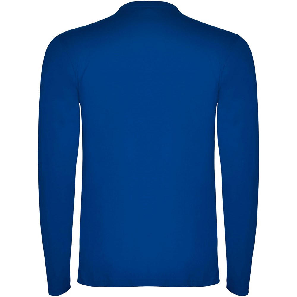 Langärmeliges Shirt aus Schlauchgewebe mit Rundhalsausschnitt aus 4 Schichten. Verstärkte Nähte an Kragen und Schultern. Keine Ärmelbündchen. Herausnehmbares Etikett. Schlauchdesign in Erwachsenengrößen und Seitennähte in Kindergrößen. Das Modell ist 185 cm groß und trägt Größe L.