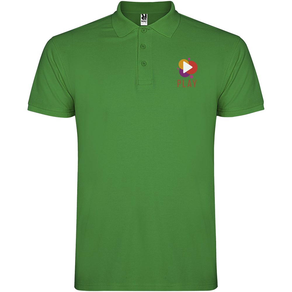 Kurzärmeliges Poloshirt für Kinder. Verstärkte und verdeckte Nähte am Innenkragen. 1x1 Rippstrickbündchen an Ärmeln und Kragen. Seitennähte. 3-Knopfleiste und Seitenschlitze. Optionale Tasche. Herausnehmbares Etikett. Das Modell ist 124 cm groß und trägt Größe 5/6.