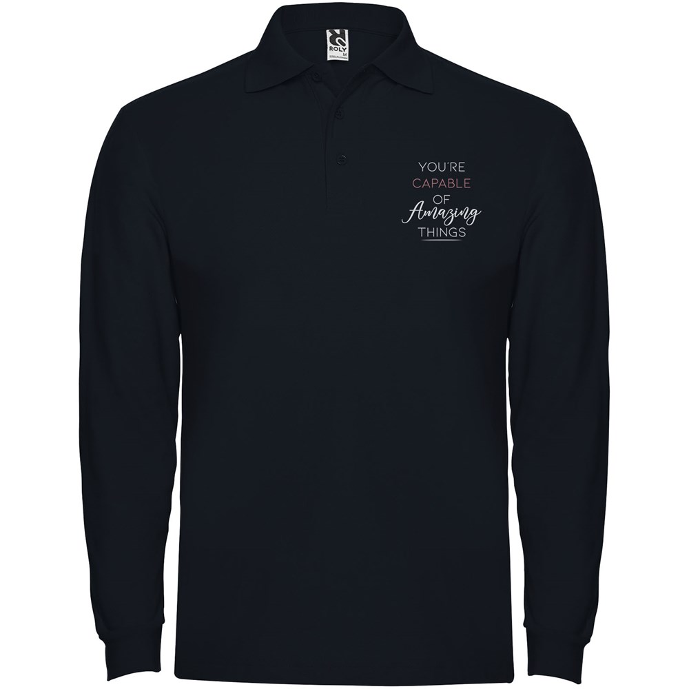 Langärmeliges Poloshirt mit geripptem Kragen und Ärmelbündchen, 3er-Knopfleiste und 1×1-Rippstrickbündchen an den Ärmeln. Verstärkte und verdeckte Nähte am Kragen. Optionale Tasche. Herausnehmbares Etikett. Das Modell ist 190 cm groß und trägt Größe L.