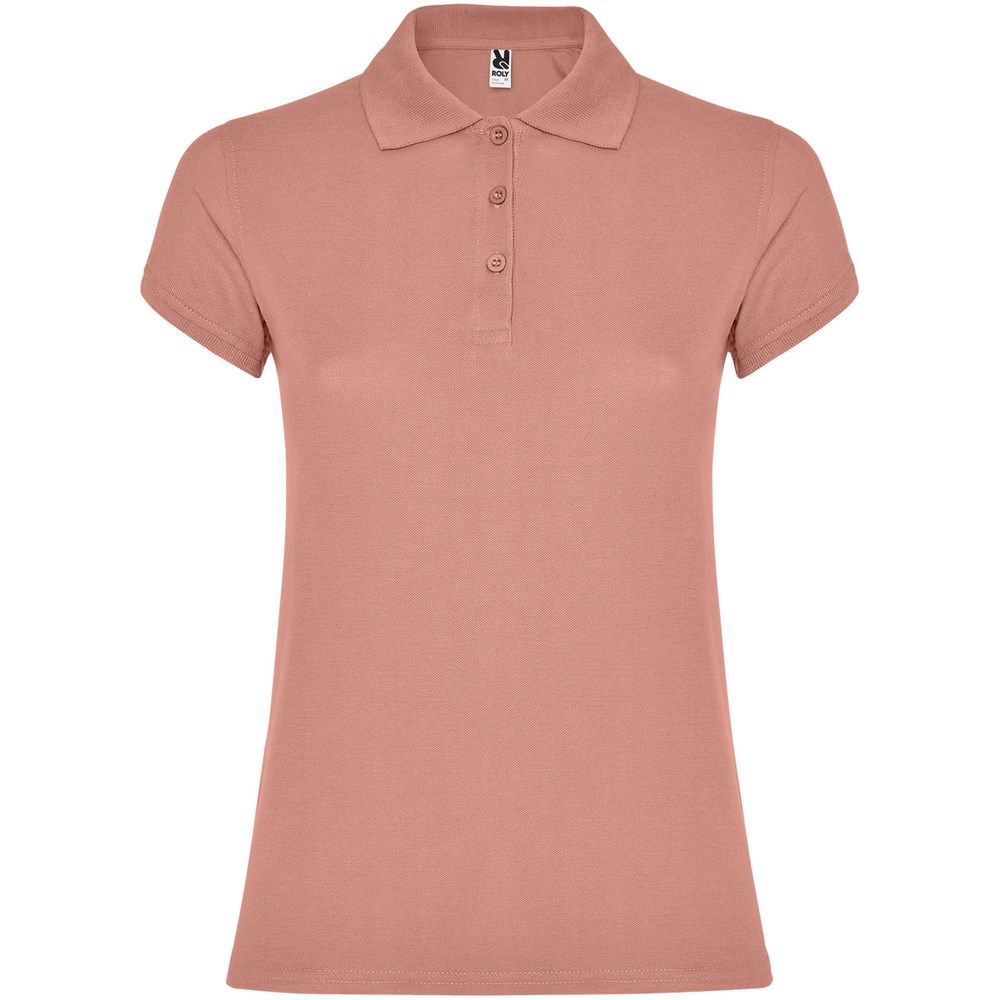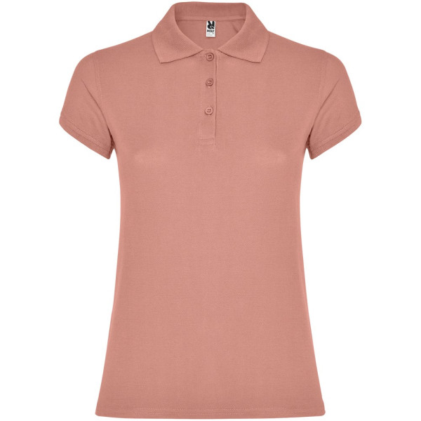 Kurzärmeliges Poloshirt für Damen. Verstärkte und verdeckte Nähte am Innenkragen. 1x1 Rippstrickbündchen an Ärmeln und Kragen. Seitennähte. 3-Knopfleiste und Seitenschlitze. Optionale Tasche. Herausnehmbares Etikett. Das Modell ist 179 cm groß und trägt Größe S.