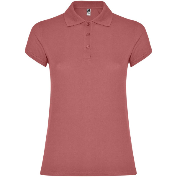 Kurzärmeliges Poloshirt für Damen. Verstärkte und verdeckte Nähte am Innenkragen. 1x1 Rippstrickbündchen an Ärmeln und Kragen. Seitennähte. 3-Knopfleiste und Seitenschlitze. Optionale Tasche. Herausnehmbares Etikett. Das Modell ist 179 cm groß und trägt Größe S.