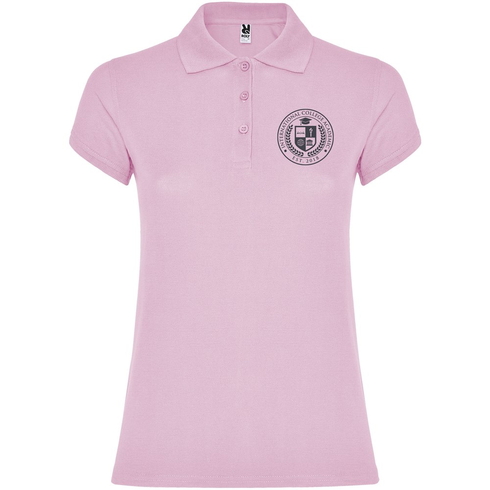 Kurzärmeliges Poloshirt für Damen. Verstärkte und verdeckte Nähte am Innenkragen. 1x1 Rippstrickbündchen an Ärmeln und Kragen. Seitennähte. 3-Knopfleiste und Seitenschlitze. Optionale Tasche. Herausnehmbares Etikett. Das Modell ist 179 cm groß und trägt Größe S.