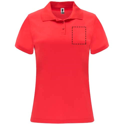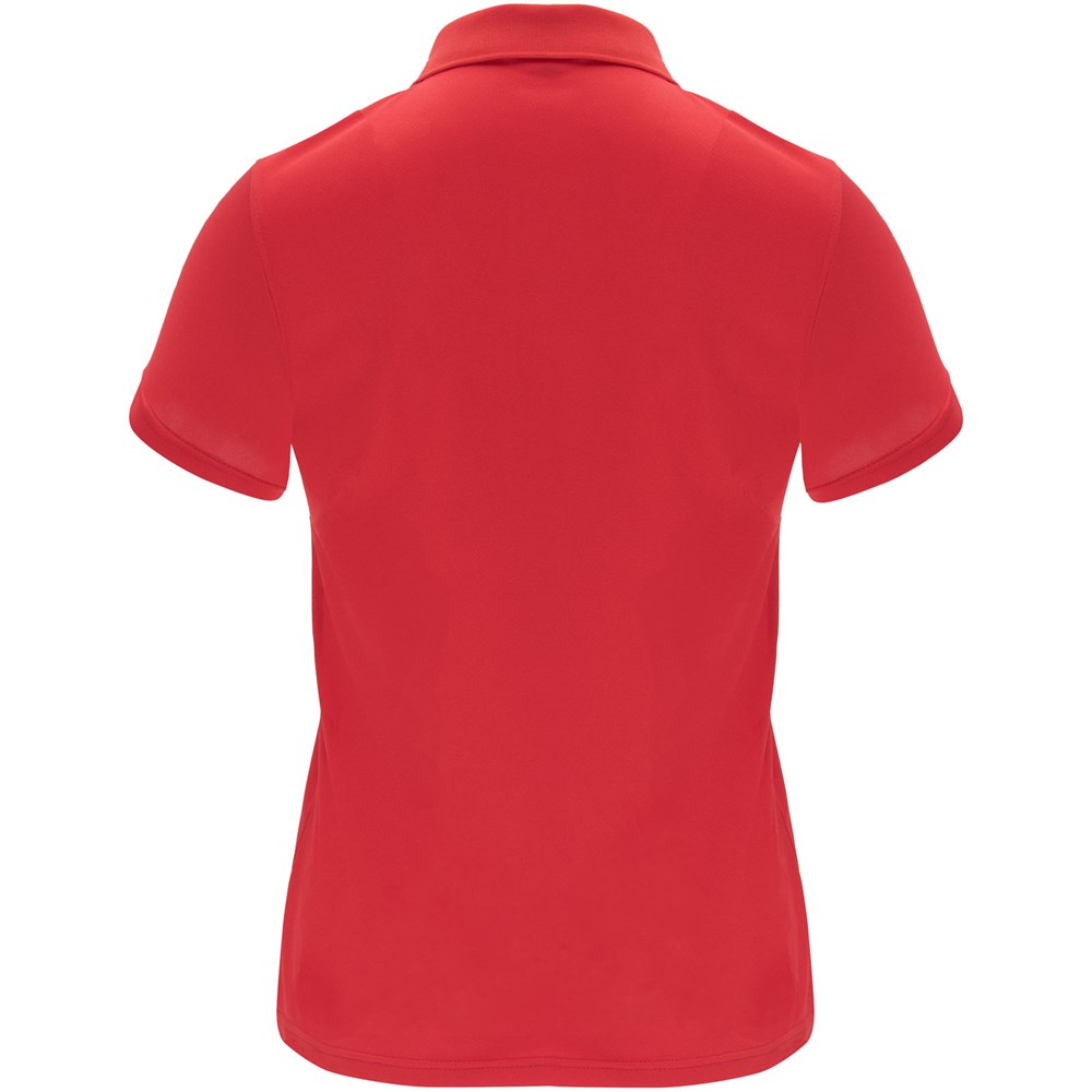 Kurzärmeliges Funktions-Poloshirt für Damen. Gestrickter Kragen mit 3-Knopfleiste. Figurbetonte Passform. Atmungsaktives, leicht zu waschendes und zu trocknendes Material. Herausnehmbares Etikett. Technisches Gewebe. Atmungsaktiver Stoff. Das Modell ist 173 cm groß und trägt Größe S.