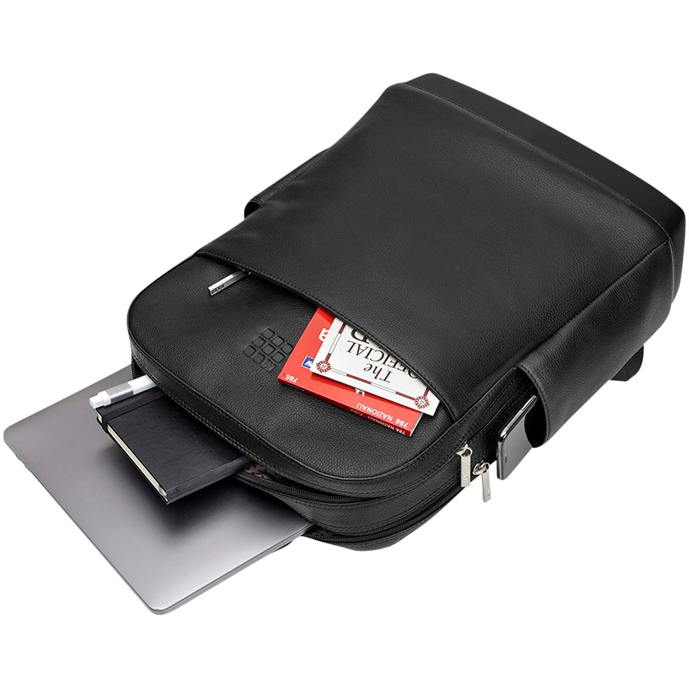 Der Classic Pro Lederrucksack ist ein eleganter Reisebegleiter mit viel Stauraum für Ihre professionellen Tools. Er verfügt über 2 Fächer für einen Laptop und persönliche Gegenstände, eine atmungsaktive Netzrückseite für angenehmen Tragekomfort unterwegs, eine leicht zugängliche Vordertasche und verstellbare Rucksackgurte. Außerdem ist er mit verschiedenen Innenfächern ausgestattet. Ein Notizbbuchfach, ein sicheres Reißverschlussfach und einen Organizer mit 2 Stiftschlaufen und einem Visitenkartenfach. Ein elektronisches Gerät bis 15" kann ebenfalls sicher verstaut werden.