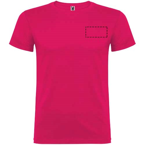 Kurzärmeliges T-Shirt mit doppellagigem Rundhalsausschnitt aus Elasthan, hergestellt aus mit Seitennähten. Verstärkte und verdeckte Nähte am Kragen. Herausnehmbares Etikett. Das Modell ist 120 cm groß und trägt Größe 5/6.