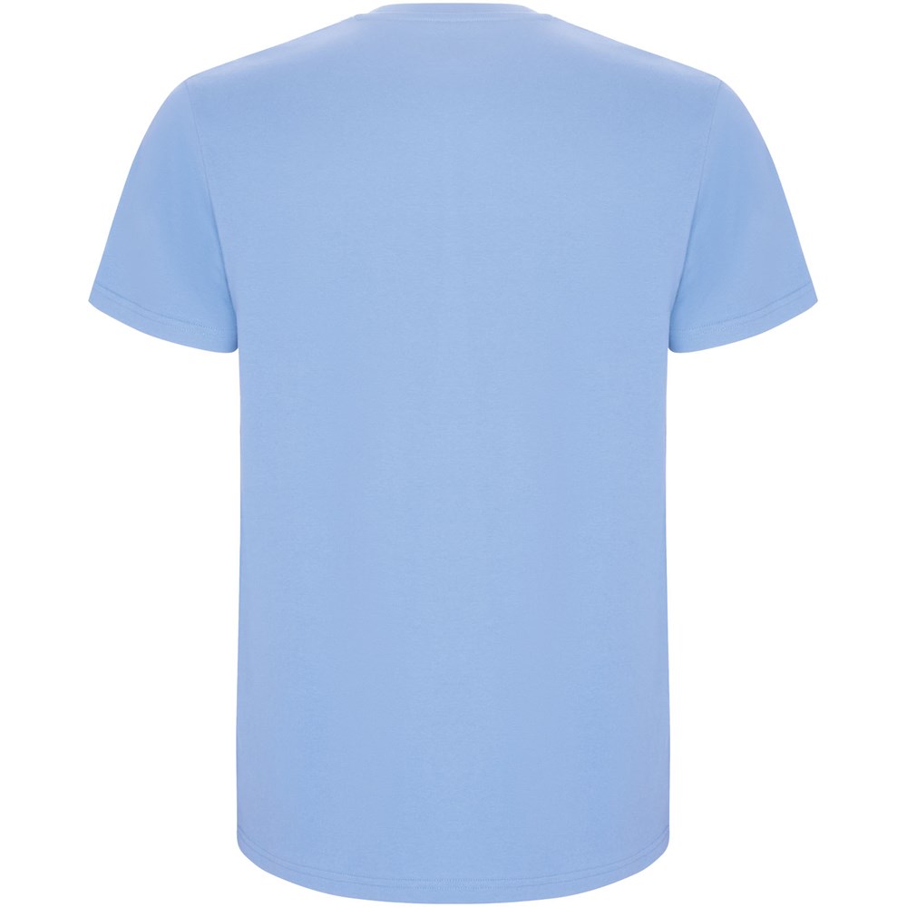 Schlauchförmiges kurzärmeliges T-Shirt. Rundhalsausschnitt mit Elasthan. Seitennähte. Herausnehmbares Etikett.