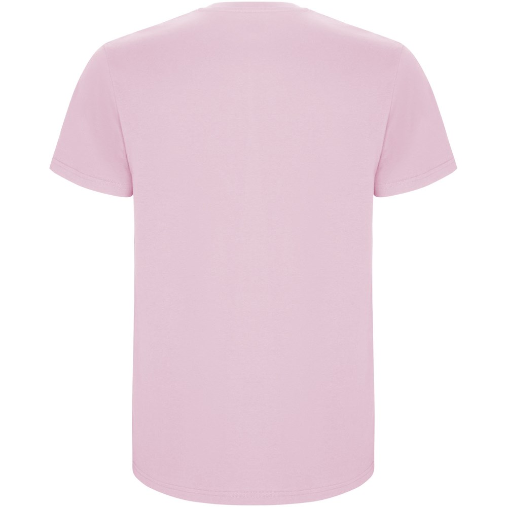 Schlauchförmiges kurzärmeliges T-Shirt. Rundhalsausschnitt mit Elasthan. Seitennähte. Herausnehmbares Etikett.
