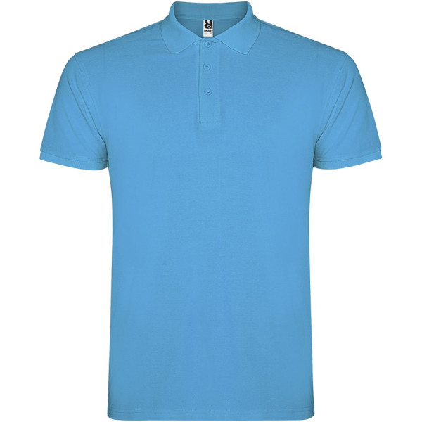 Kurzärmeliges Poloshirt für Herren. Verstärkte und verdeckte Nähte am Innenkragen. 1x1 Rippstrickbündchen an Ärmeln und Kragen. Seitennähte. 3-Knopfleiste und Seitenschlitze. Optionale Tasche. Herausnehmbares Etikett. Das Modell ist 185 cm groß und trägt Größe L.