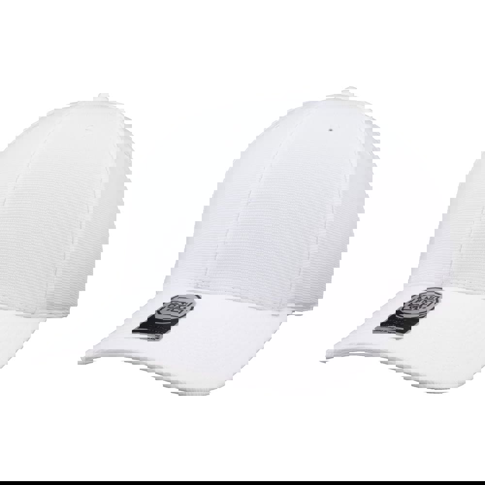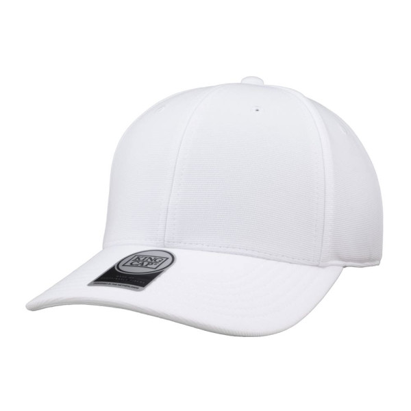 6 Panel Cap mit Frontfütterung. Mit Schirm mit Memory-Funktion. Medium profile. Mattschwarzer offener Metallverschluss. Hergestellt aus 97 % recyceltem Ottoman und 3 % Spandex. UPF50+ Sonnenschutz.