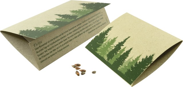 Das trendige Graspapier-Kärtchen mit den Fichten-Samen ist ein natürliches und sympathisches Giveaway in der Weihnachtszeit. Nutzen Sie das Klappkärtchen im Standardmotiv für Ihre Werbebotschaft oder, ebenfalls ab 250 Stück, für Ihre individuelle Gestaltung. Inhalt: Fichtensamen