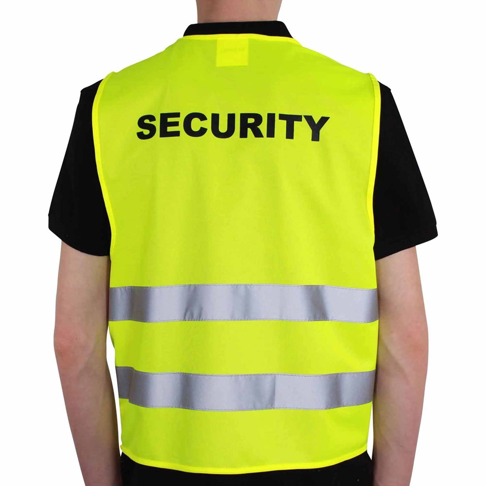 Unsere Warnweste Premium gelb ist aus 100% Polyester, wird nach EN ISO 20471 produziert und ist TÜV-Rheinland geprüft. Mit Anleitung einzeln im wiederverschließbaren Polybeutel verpackt. Durch die beiden Klettverschlüsse ist die Größe variabel einstellbar. Mit zwei reflektierenden Streifen, perfekt vernähte Qualität und Einleger in sieben Sprachen mit den gesetzlichen Pflichtangaben. Mit dem Standardmotiv 'Security' auf der Rückseite 1farbig schwarz bedruckt. Ein zusätzlicher Druck auf der Vorderseite ist möglich. Gern erstellen wir Ihnen dazu ein Angebot.