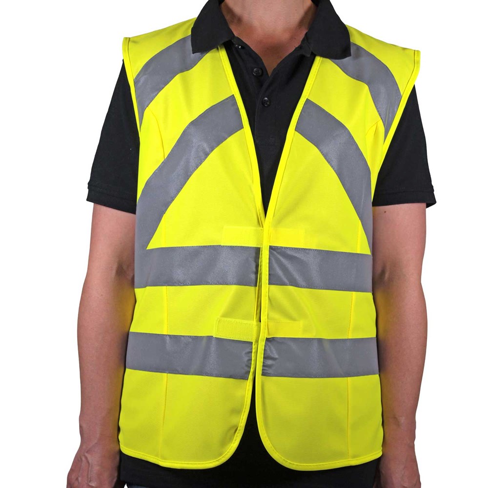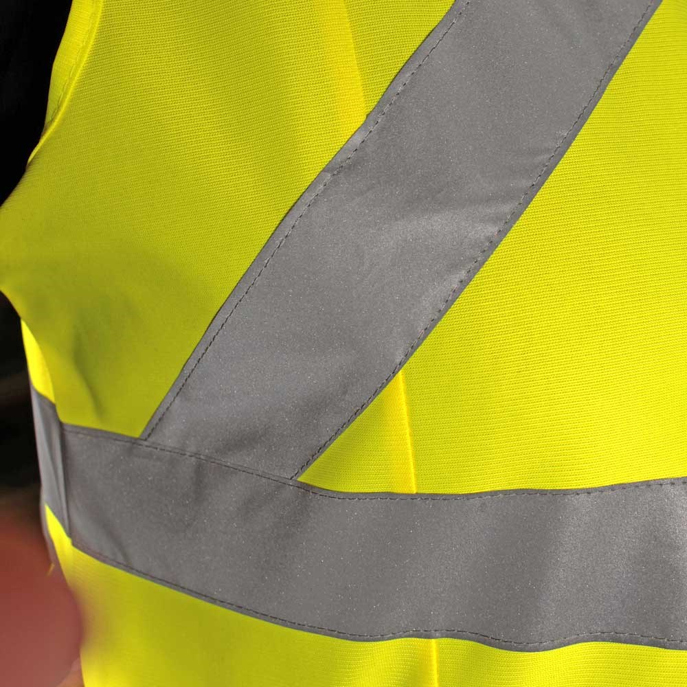 Unsere gelbe Qualitäts-Warnweste Tailliert aus 100% Polyester wird nach EN ISO 20471 produziert und ist TÜV-Rheinland geprüft. Durch die beiden Klettverschlüsse ist die Größe variabel einstellbar. Wählen Sie aus den drei verfügbaren Größen aus. Durch zwei reflektierenden Streifen am Bund und zusätzlichen Reflex-Querstreifen auf der Vorderseite werden Sie mit dieser Weste im Dunkeln noch besser gesehen.