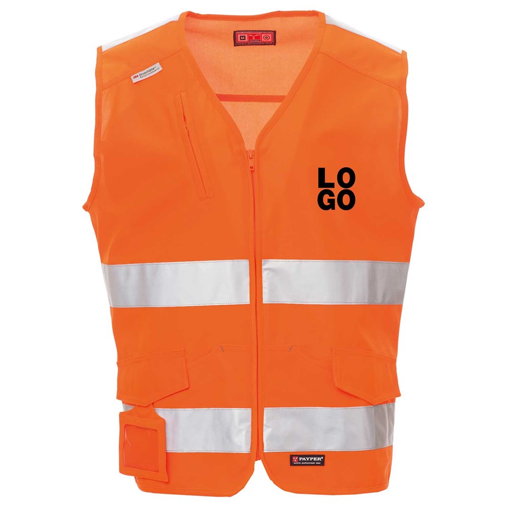 Warnweste aus 100% Polyester und 3M-Scotchlite-Streifen. Diese Weste besticht durch viel Extras wie: Reißverschluss, zwei Vordertaschen mit LOCK SYSTEM im Kängaruschnitt, abtrennbarem und verschließbaren Ausweisfach und einer Brusttasche mit Reißverschluss.