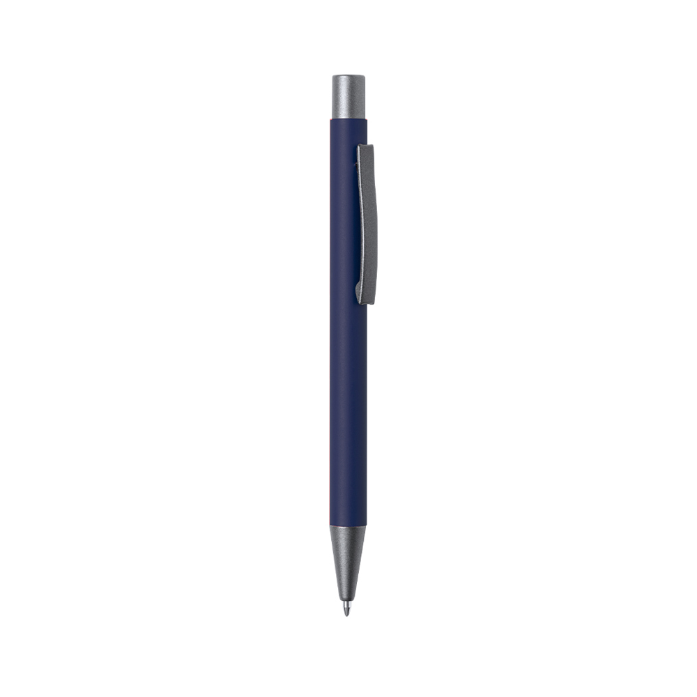 Umweltfreundlicher Kugelschreiber aus recyceltem Aluminium, dessen Ursprung in der fast unendlichen Wiederverwendung eines der Materialien mit dem größten Potenzial für die Wiederverwertbarkeit liegt, wobei es seine ursprünglichen Eigenschaften beibehält. Dies macht ihn zu einem umweltfreundlichen, recycelten und leicht wiederverwertbaren Material. Darüber hinaus können die während des Recyclingprozesses anfallenden Rückstände zur Gewinnung neuer, wiederverwendbarer Ressourcen genutzt werden, was neben anderen Nachhaltigkeitsfaktoren zu einem geringeren Energieverbrauch in der Herstellungsphase führt. Druckknopfmechanismus, erhältlich in einer breiten Palette von Metallic-Farben, mit Zubehör in Rotgussoptik. Metallischer Clip, blaue Tinte und Logo aus recyceltem Aluminium auf dem oberen Teil des Kugelschreibers. GRS-Zertifizierung (Global Recycled Standard), die die recycelte Herkunft des für die Herstellung des Produkts verwendeten Materials garantiert.