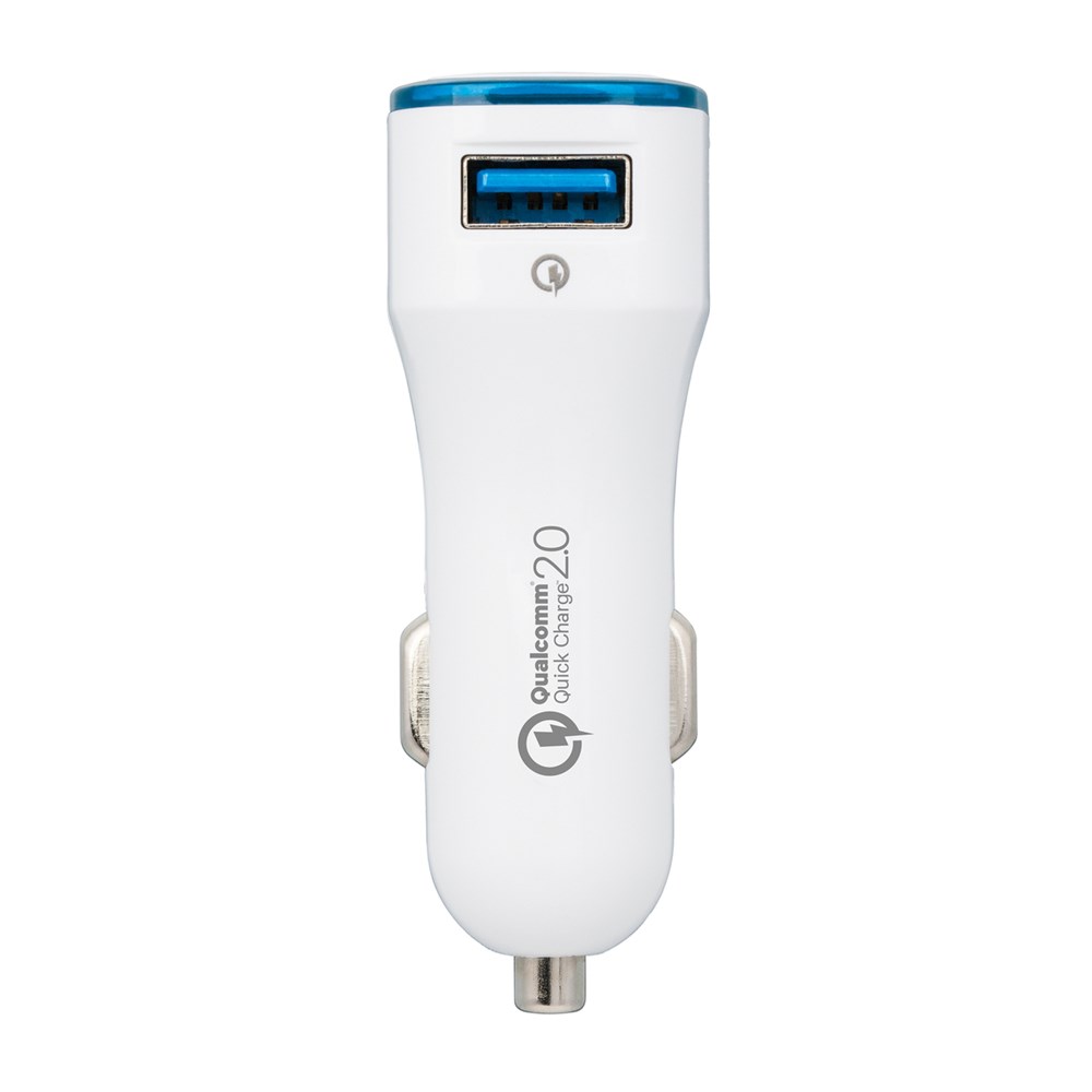 Dieser Quick charge 2.0-Autoladeadapter hilft, wenn der Akku unterwegs schnell aufgeladen werden muss. Voraussetzung: Ihr Handy ist schnellaufladefähig! Wenn nicht, lädt der Adapter Ihr Gerät dennoch in Standardgeschwindigkeit auf. Output bei zwei Ausgängen - Standardausgang USB DC 5V/1,6A und Quick charge 2.0 mit bis zu DC 5V/2,4A; DC9V/1,7A; DC 12V/1,2 A in Abhängigkeit vom zu ladenden Gerät. Das integrierte Schutzsystem bewahrt vor Überspannung, Überhitzung und Kurzschluss. Der umlaufende Farbring an der Werbefläche wird per LED hinterleuchtet.