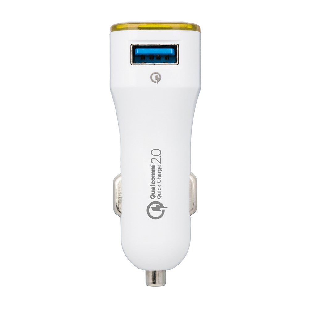 Dieser Quick charge 2.0-Autoladeadapter hilft, wenn der Akku unterwegs schnell aufgeladen werden muss. Voraussetzung: Ihr Handy ist schnellaufladefähig! Wenn nicht, lädt der Adapter Ihr Gerät dennoch in Standardgeschwindigkeit auf. Output bei zwei Ausgängen - Standardausgang USB DC 5V/1,6A und Quick charge 2.0 mit bis zu DC 5V/2,4A; DC9V/1,7A; DC 12V/1,2 A in Abhängigkeit vom zu ladenden Gerät. Das integrierte Schutzsystem bewahrt vor Überspannung, Überhitzung und Kurzschluss. Der umlaufende Farbring an der Werbefläche wird per LED hinterleuchtet.