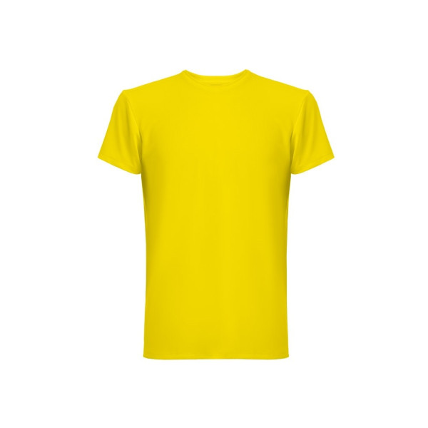 T-Shirt aus Jersey (190 g/m²), bestehend aus 90 % Polyester und 10 % Elastan. Mit 1x1-Rippstrickkragen. Doppelnähte an Ärmeln und Saum. Lieferung in einer Papprolle. Größen: XS, S, M, L, XL