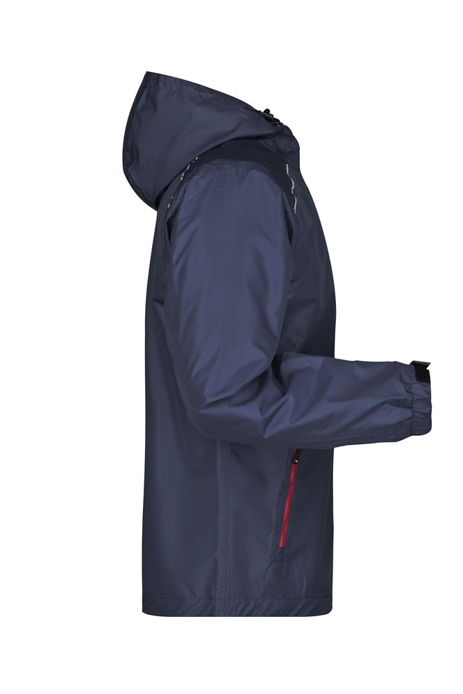 Wind- und wasserdichtes Gewebe (3.000 mm Wassersäule) mit TPU Beschichtung Atmungsaktiv und wasserdampfdurchlässig (1.500 g/m²/24h) Versiegelte Nähte Kontrastfarbige Reißverschlüsse Unterlegter Frontreißverschluss mit Kinnschutz Angeschnittene, verstellbare Kapuze mit elastischer Kordel 2 Seitentaschen mit Reißverschluss, Innentasche Modische reflektierende Details an Kapuze, Vorder- und Rückenteil Reißverschluss zur Rückenveredelung JN1117: Taillierter Schnitt 1/2 Oberweite: 57 cm 1/2 Saumweite: 54 cm Länge ab Schulter Vorderteil: 71 cm Länge ab Schulter Rückenteil: 74 cm Ärmel Länge: 66 cm OEKO-TEX® Standard 100 (15.0.70467) Atmungsaktiv-Wasserdampfdurchlässig Wassersäule ab 1.500 mm Wassersäule ab 2.000 mm Wassersäule ab 3.000 mm Nähte versiegelt Kapuze Verschluss: Klett