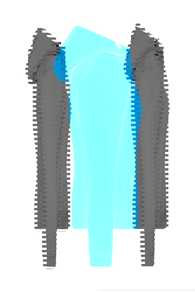 2-Lagen Softshellmaterial mit kontrastfarbiger Innenseite in Netzoptik Wasser- und schmutzabweisend durch BIONIC-FINISH®ECO Elastischer Bund und elastische Armbündchen Aufgesetzte Kängurutasche mit Reißverschluss, eine Innentasche Angeschnittene Kapuze mit Weitenregulierung YKK Reißverschlüsse JN1145: leicht tailliert 1/2 Oberweite: 47 cm 1/2 Taillenweite: 43 cm Länge ab Schulter: 61 cm Ärmel Länge: 65 cm OEKO-TEX® Standard 100 (15.0.70467) BIONIC-FINISH®ECO Softshell 2-lagig bonded Kapuze YKK - Reißverschluss