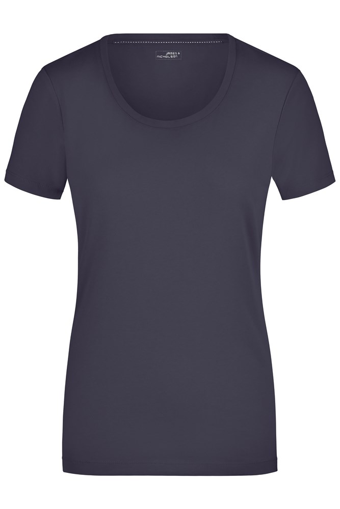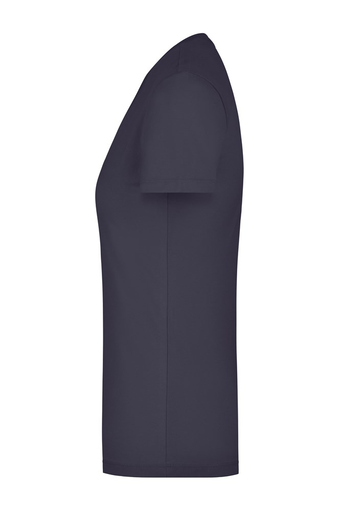 Gekämmte, ringgesponnene Baumwolle Lockere Schnittform Halsferner Rundhalsausschnitt Einlaufvorbehandelt 1/2 Oberweite: 44 cm 1/2 Taillenweite: 41 cm 1/2 Saumweite: 46 cm Länge ab Schulter: 64 cm Ärmel Länge: 17 cm OEKO-TEX® Standard 100 (15.0.70467) Baumwolle Elastan Rundhals