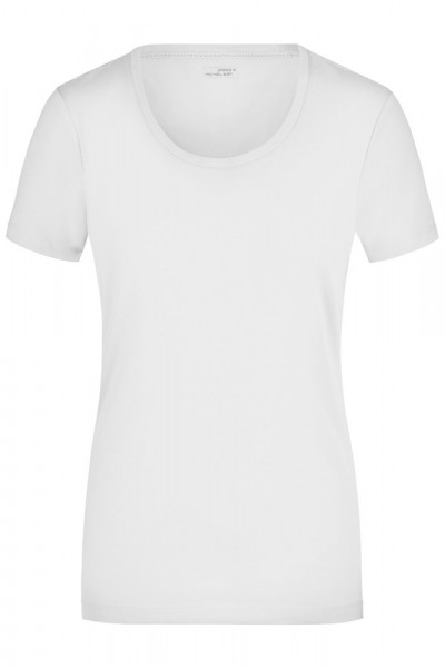 Gekämmte, ringgesponnene Baumwolle Lockere Schnittform Halsferner Rundhalsausschnitt Einlaufvorbehandelt 1/2 Oberweite: 44 cm 1/2 Taillenweite: 41 cm 1/2 Saumweite: 46 cm Länge ab Schulter: 64 cm Ärmel Länge: 17 cm OEKO-TEX® Standard 100 (15.0.70467) Baumwolle Elastan Rundhals